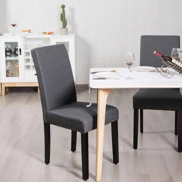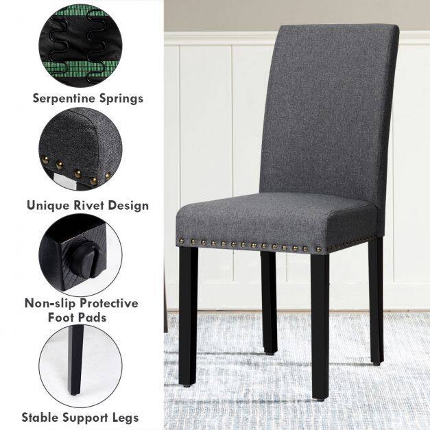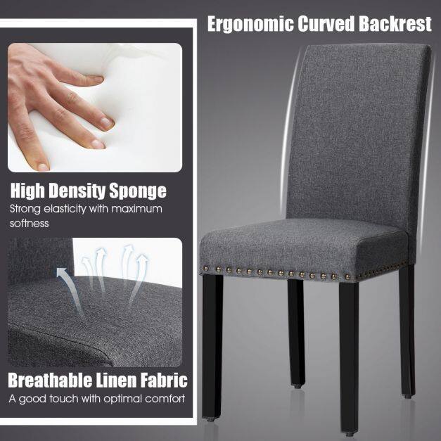 The chair is covered with breathable linen fabric to provide a comfortable touch. High curved backrest is ergonomically designed for relieving your back fatigue. And wide seat padded with high resilience sponge offers optimal softness and comfort. What's more, superior solid wood legs and solid connection ensure the structure sturdy and stable for long time use.