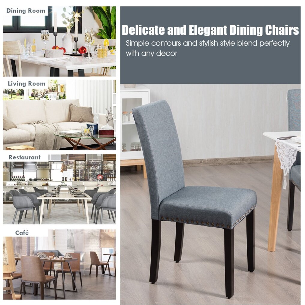 ● High Density Sponge and Linen Fabric: These 2 dining chairs are filled with high-density sponge to offer optimal softness and elasticity. And serpentine spring under the seat make chairs more resilient. Besides, covered with breathable linen fabric, these dining chairs will provide maximum comfort.