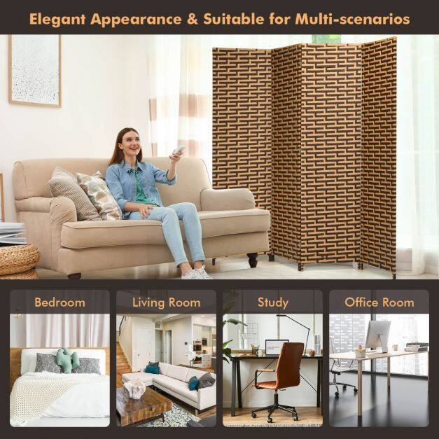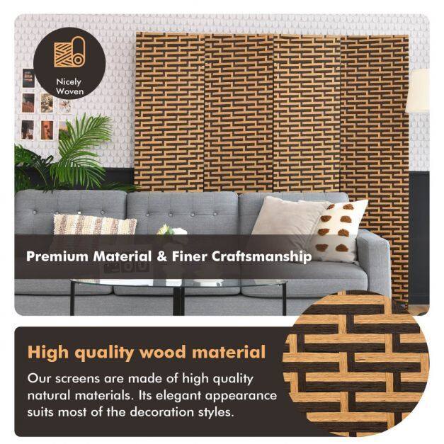 Nice & Natural Looking: This room divider is constructed with double-sided hand-woven pattern, which makes it look equally attractive from front or back. The exquisite craftsmanship fits any decor in your home and can take your room to the next level.