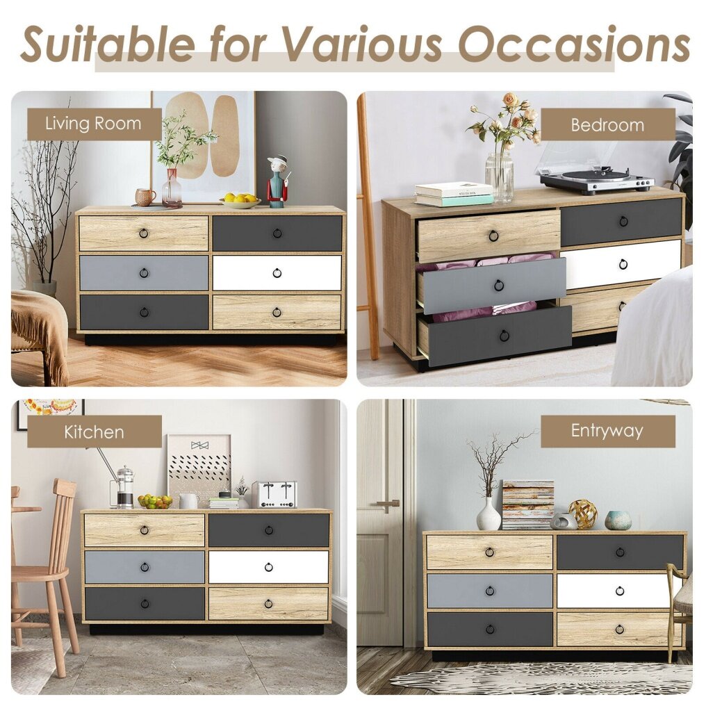 ● Multipurpose Drawer Dresser: This practical storage cabinet with compact size can be placed in bedroom, living room, entryway and more. The spacious tabletop allows you to place cups, lamps, books and so on. 6 drawers offer ample space for you to keep your items in order.