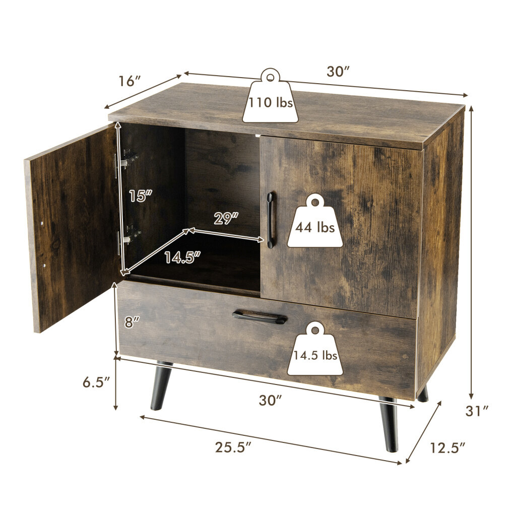 Ample Storage Space: The storage cabinet provides a large enclosed space, including a spacious door cabinet and a pull-out drawer. It meets your storage needs and helps create a clean and tidy living space. What's more, the wide top of the cabinet can also serve as a display platform for your favourite ornaments.