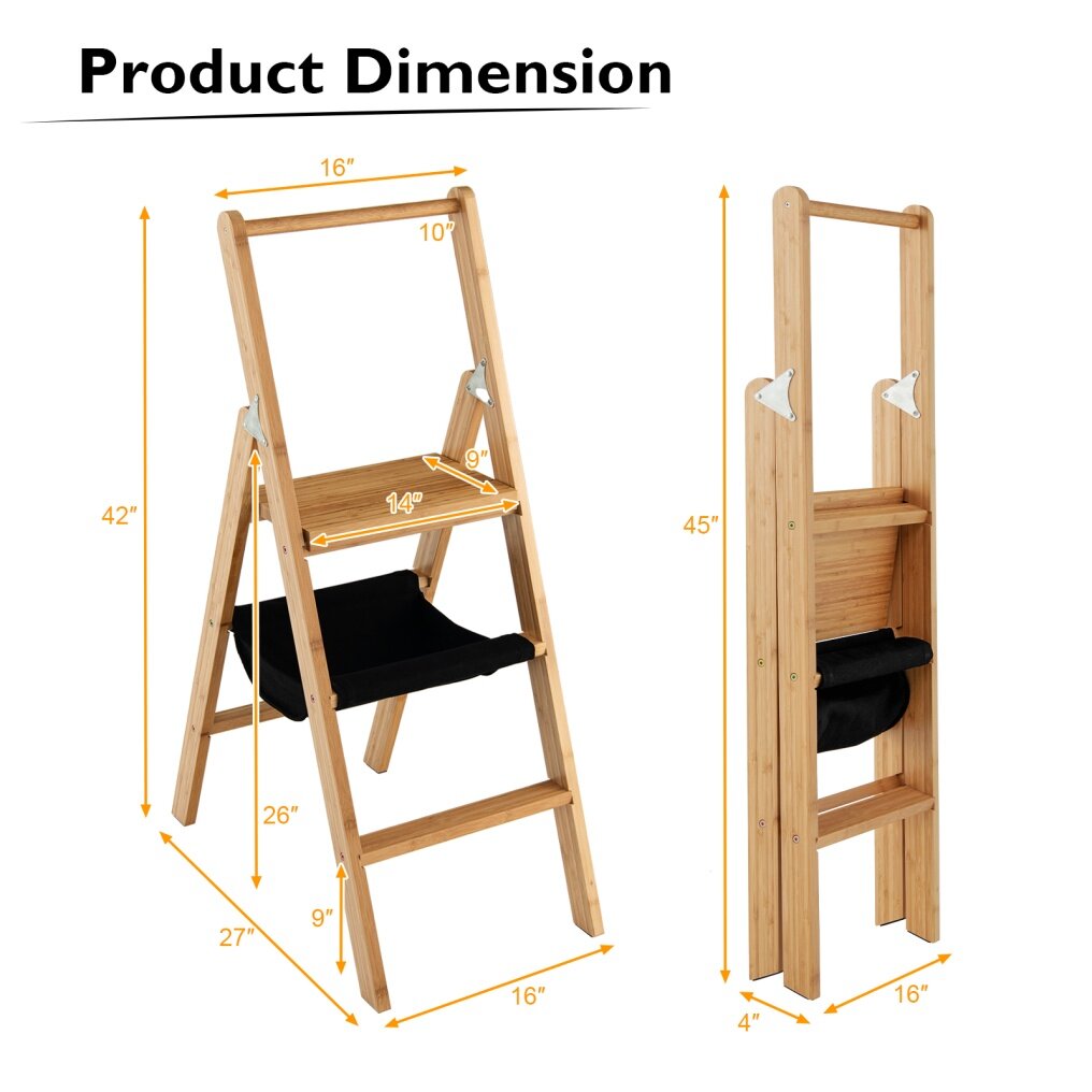 ● Reliable Safety and Convenient Tool Bag: This bamboo ladder is designed with high handrail, which is safer and more comfortable than other ladders with short handrails. What's more, with the extra tool bag, you can keep screwdriver, wrench and other tools within reach.