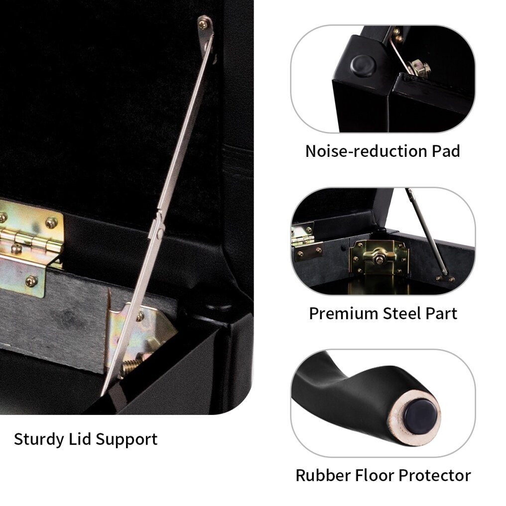 Built-in Storage Compartment: There is a large built-in storage compartment under the seat for storing music, books or other items. The top lid and hidden storage are connected by premium bracket lock which can hold the seat lid in fully open position.