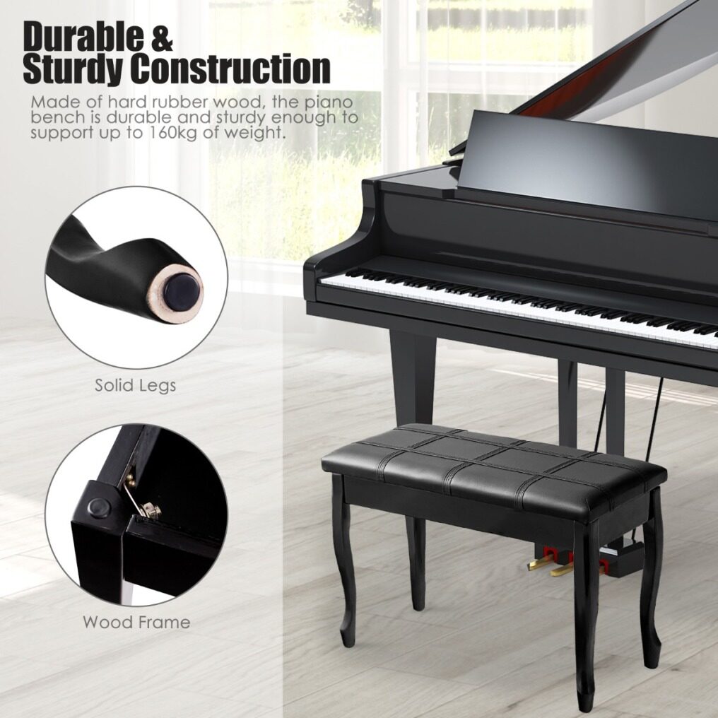 Sturdy Construction: Our piano bench is made of high quality solid wood and PU leather. Solid wooden legs offer strong support, making it sturdy and durable enough to stand steadily. With a anti-skid foot pad under each leg to protect floor from being scratched.