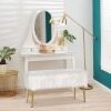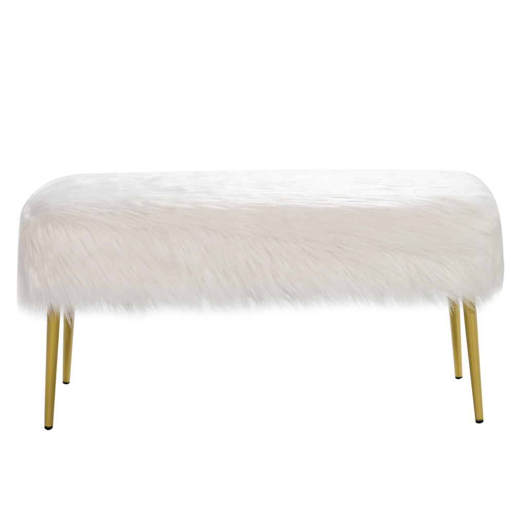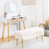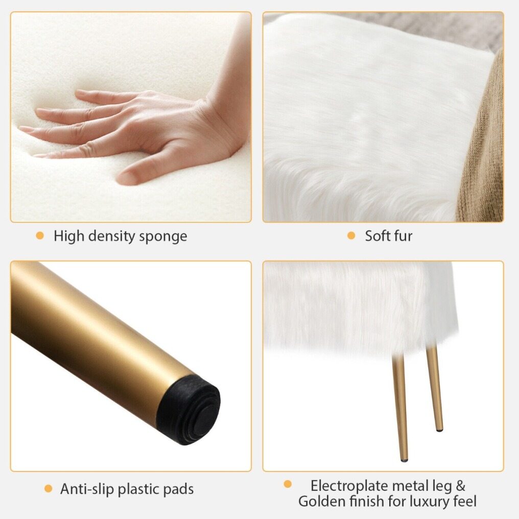 - Faux Fur Vanity Stool with Golden Legs: The plush faux fur enables the vanity stool to become an eye-catching item that brings in glam and a warm feeling. Featuring slim golden legs, this vanity dressing stool provides both a stable chair and an accent furniture piece to decorate your interior.