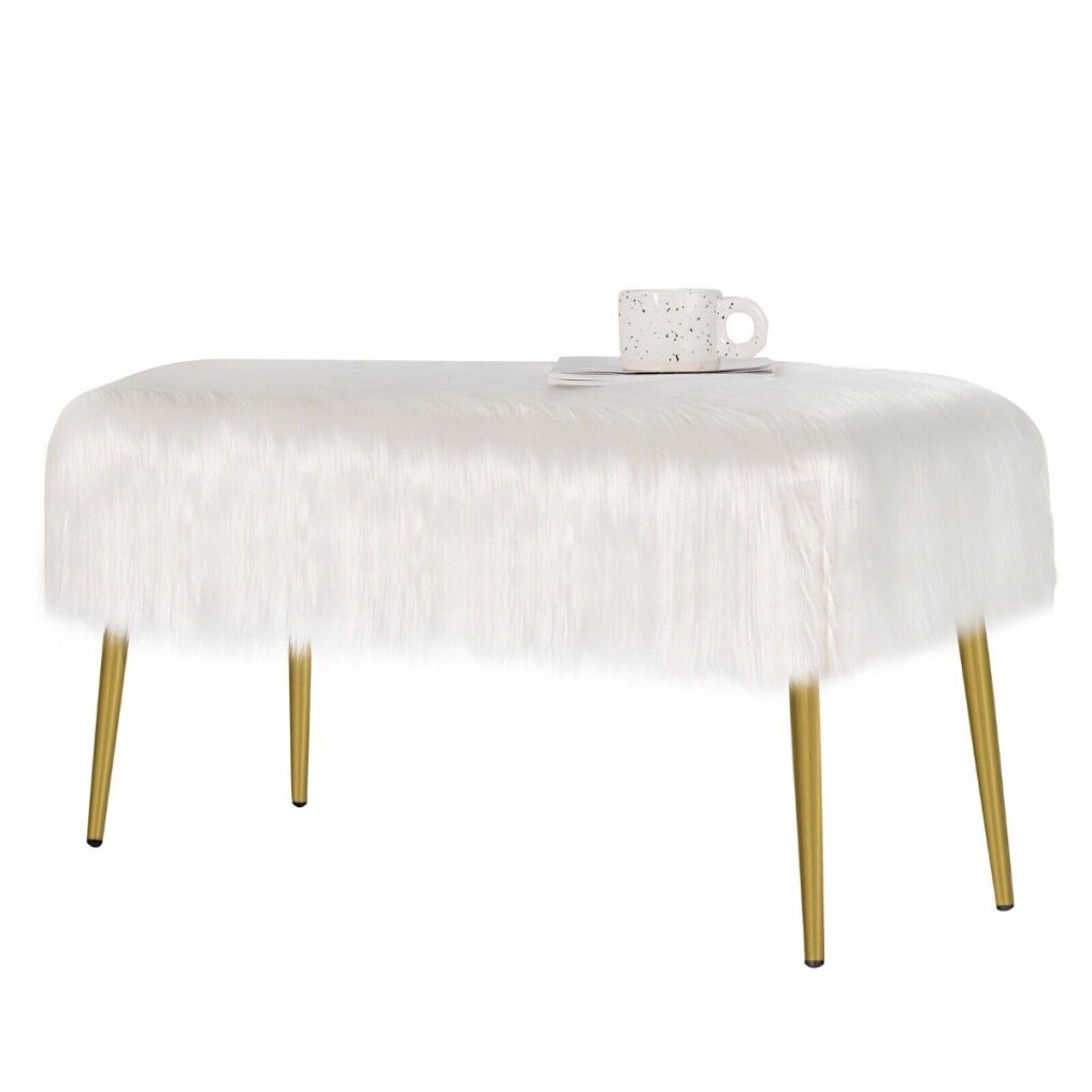 - All in One Design: This faux fur footstool perfectly matches your vanity table and doubles as a comfy footrest, guest stool or shoe bench for added convenience. The pouf ottoman is an ideal addition to your bedroom, foyer, living room, and more. Compact size won't crowd your rooms and can be slid under your vanity desk.