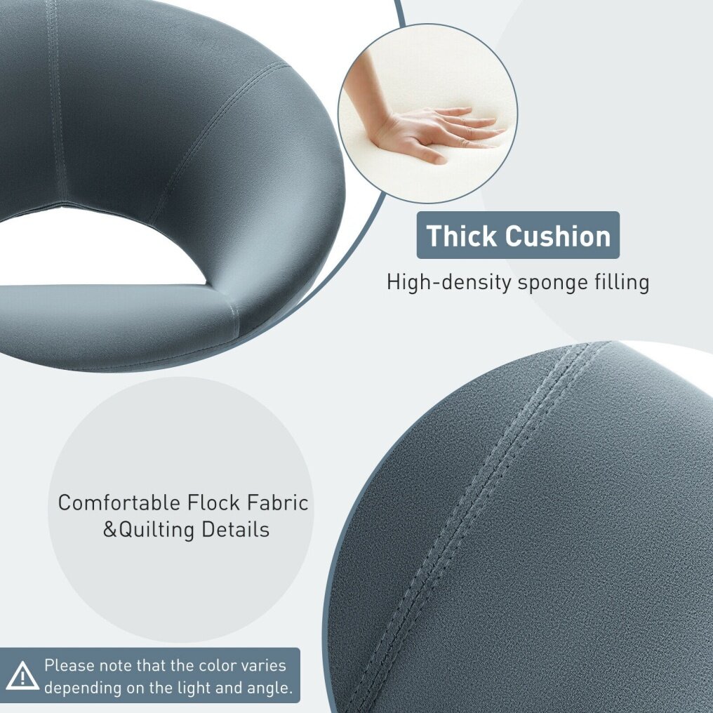 Featuring a thick cushion with high-density sponge filling, this swivel accent chair makes seating pleasant and relaxed. Other comfortable designs like soft flock fabric, oversized seat, and extra-wide hollowed back, enhance the ideal seating experience and ergonomic support. The steel seat frame with 4 solid beech legs firmly and stably supports this accent chair. A stainless steel swiveling system enables the chair to rotate in all directions with no wheels to scratch floors. The anti-skid pads will protect your floor. This accent chair works magnificently as a vanity chair, a task chair, or a dining chair.