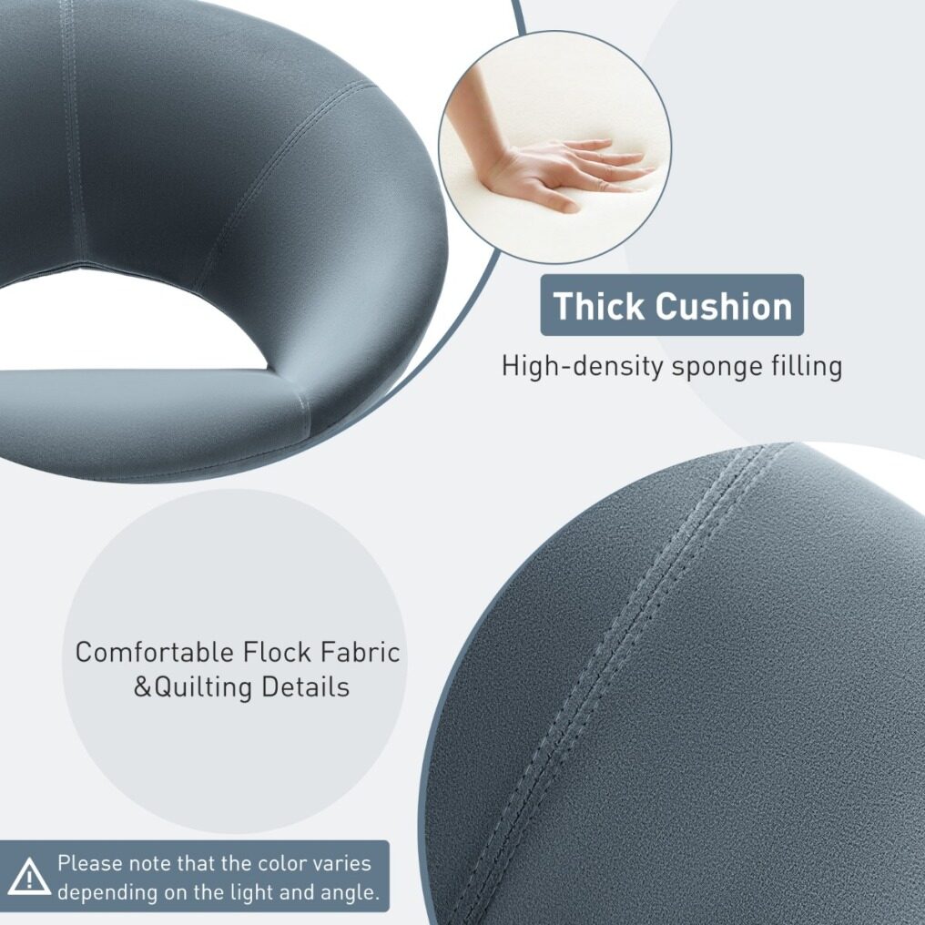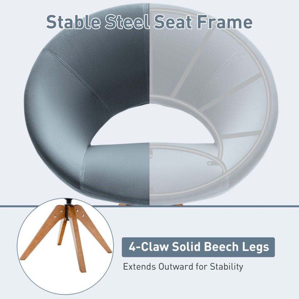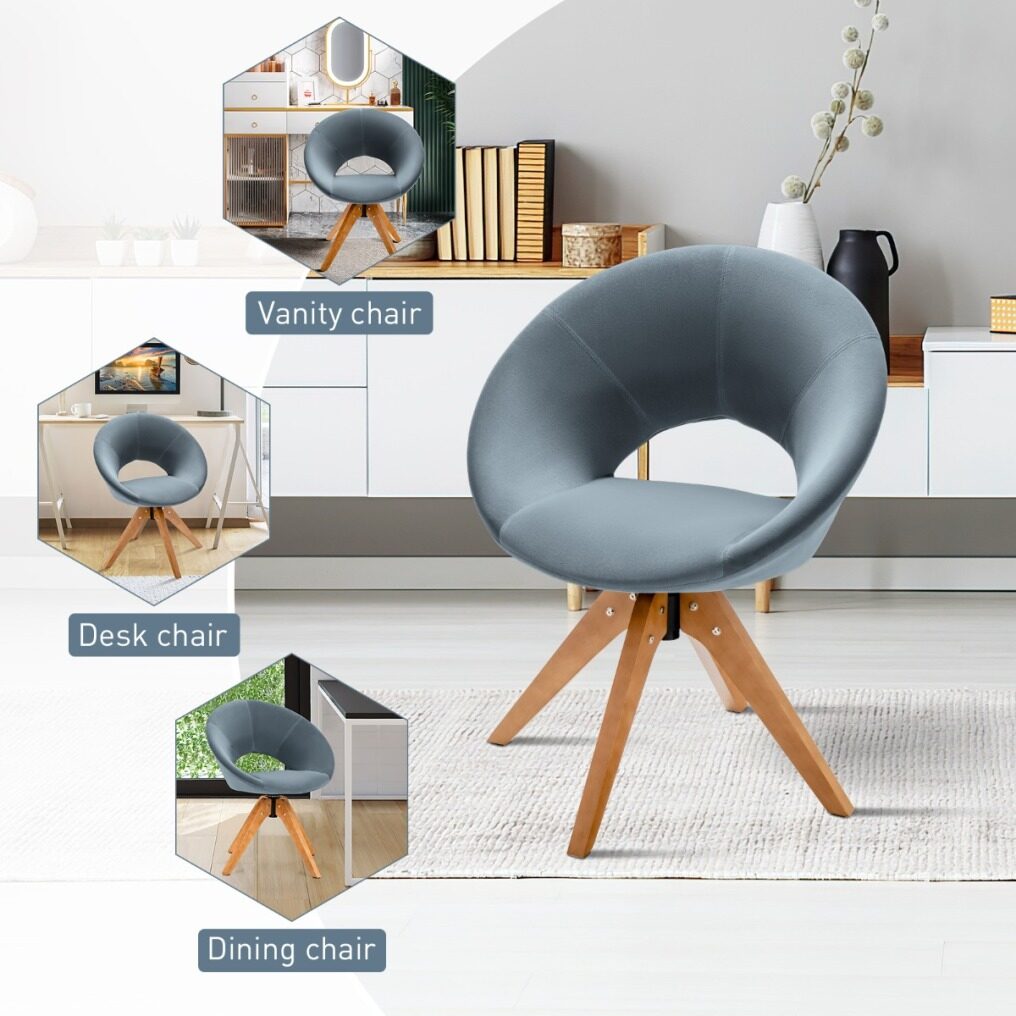 Featuring a thick cushion with high-density sponge filling, this swivel accent chair makes seating pleasant and relaxed. Other comfortable designs like soft flock fabric, oversized seat, and extra-wide hollowed back, enhance the ideal seating experience and ergonomic support. The steel seat frame with 4 solid beech legs firmly and stably supports this accent chair. A stainless steel swiveling system enables the chair to rotate in all directions with no wheels to scratch floors. The anti-skid pads will protect your floor. This accent chair works magnificently as a vanity chair, a task chair, or a dining chair.