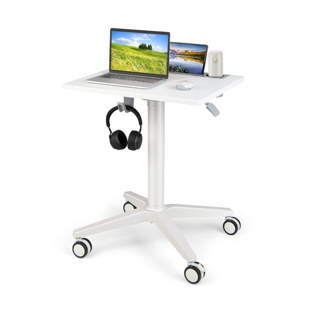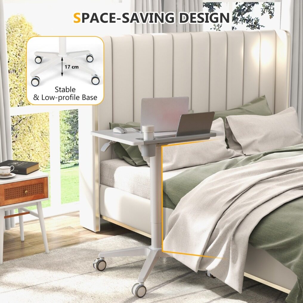 ● Space-saving Design: The stable and low-profile base of the standing laptop desk can be easily tucked under furniture, such as a bed or sofa, to save space and bring convenience. Thus, the versatile rolling desk is suitable for home office, classroom, lecture hall or ward.