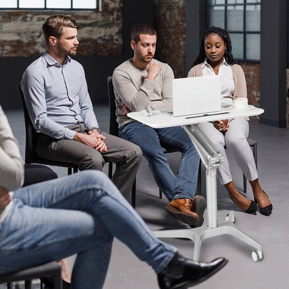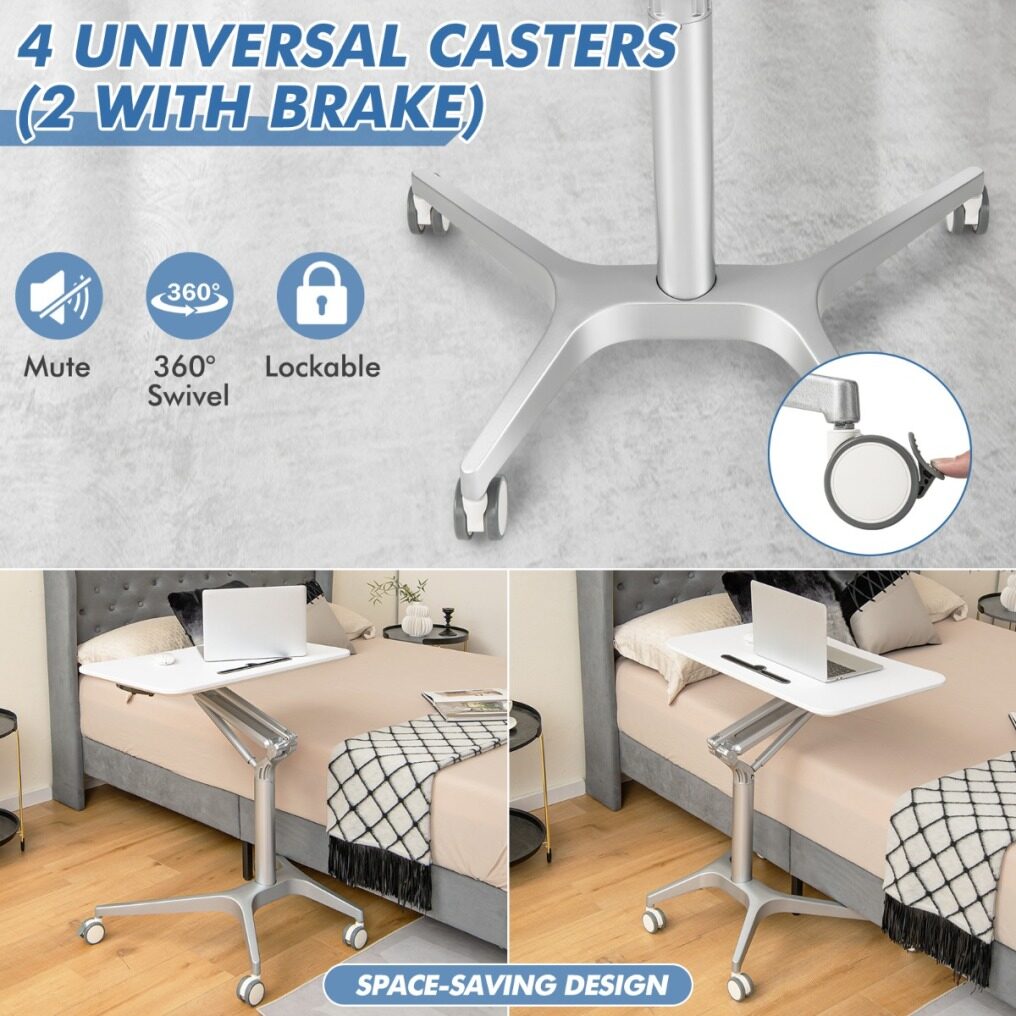 ● Heavy-duty Aluminum Base: The rolling laptop cart sits on a heavy-duty aluminum base that provides reliable support and a static weight capacity of 100 lbs/45 kg. Meanwhile, the 4-claw base can slide under the furniture, such as a sofa or bed, to save space and bring the tabletop closer to you.