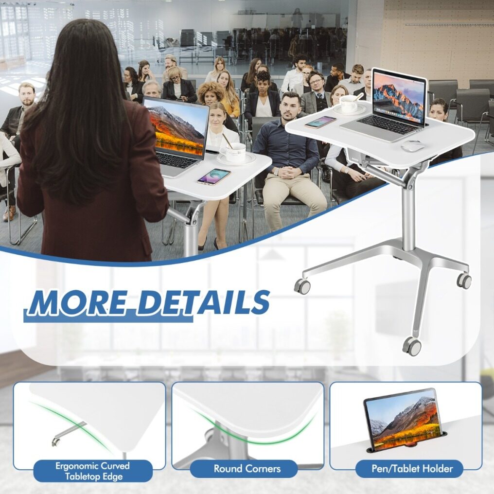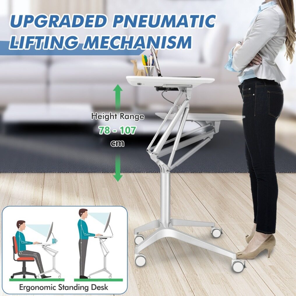 ● Ergonomic Standing Desk: The sit-stand laptop desk features an upgraded pneumatic lifting mechanism that offers a height range of 31-42 Inches to suit your height and posture. This gives you the flexibility to adjust the desk height and keep the laptop always at the ideal viewing height, which benefits your spine health.