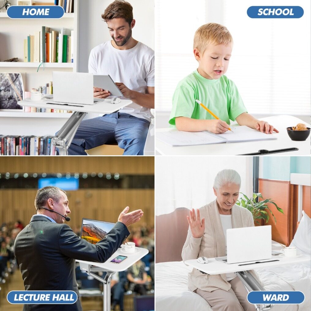 ● Where It Will Fit: Literally anywhere! The height-adjustable desk is a practical choice for home, school, office or ward, serving different purposes to satisfy your needs. What's more, the 28" x 12" tabletop is equipped with a pen/tablet holder to keep these essentials within easy reach.