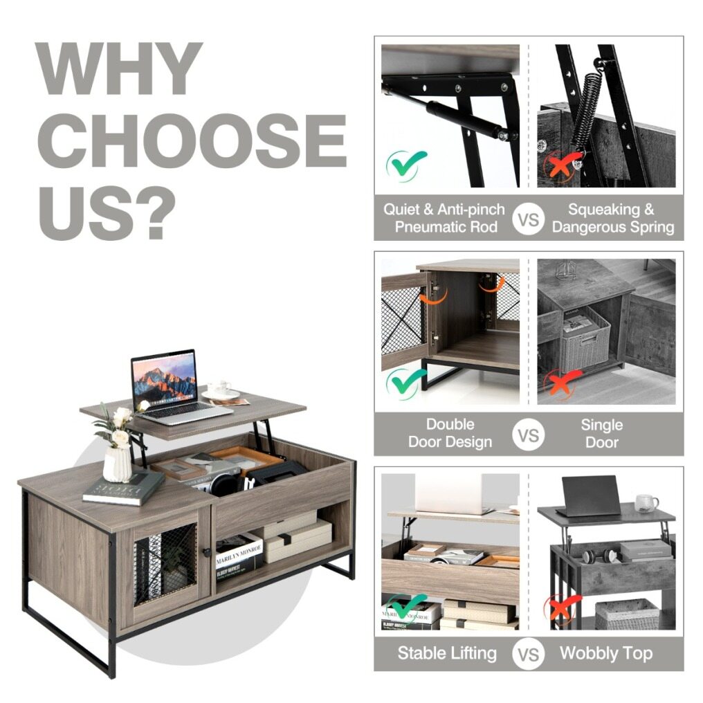 Lift Top for Your Convenience: With a lift top that can move up and forward, the coffee table can draw you closer to it, bringing convenience when you'd like to have a drink or take a look at the laptop on the table. What's more, there is also a fixed tabletop to accommodate the items that you move away from the lift top during lifting.
