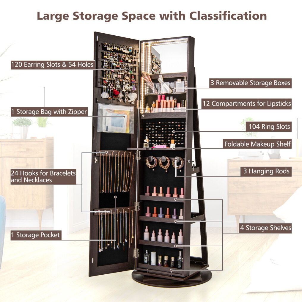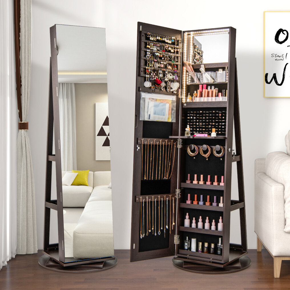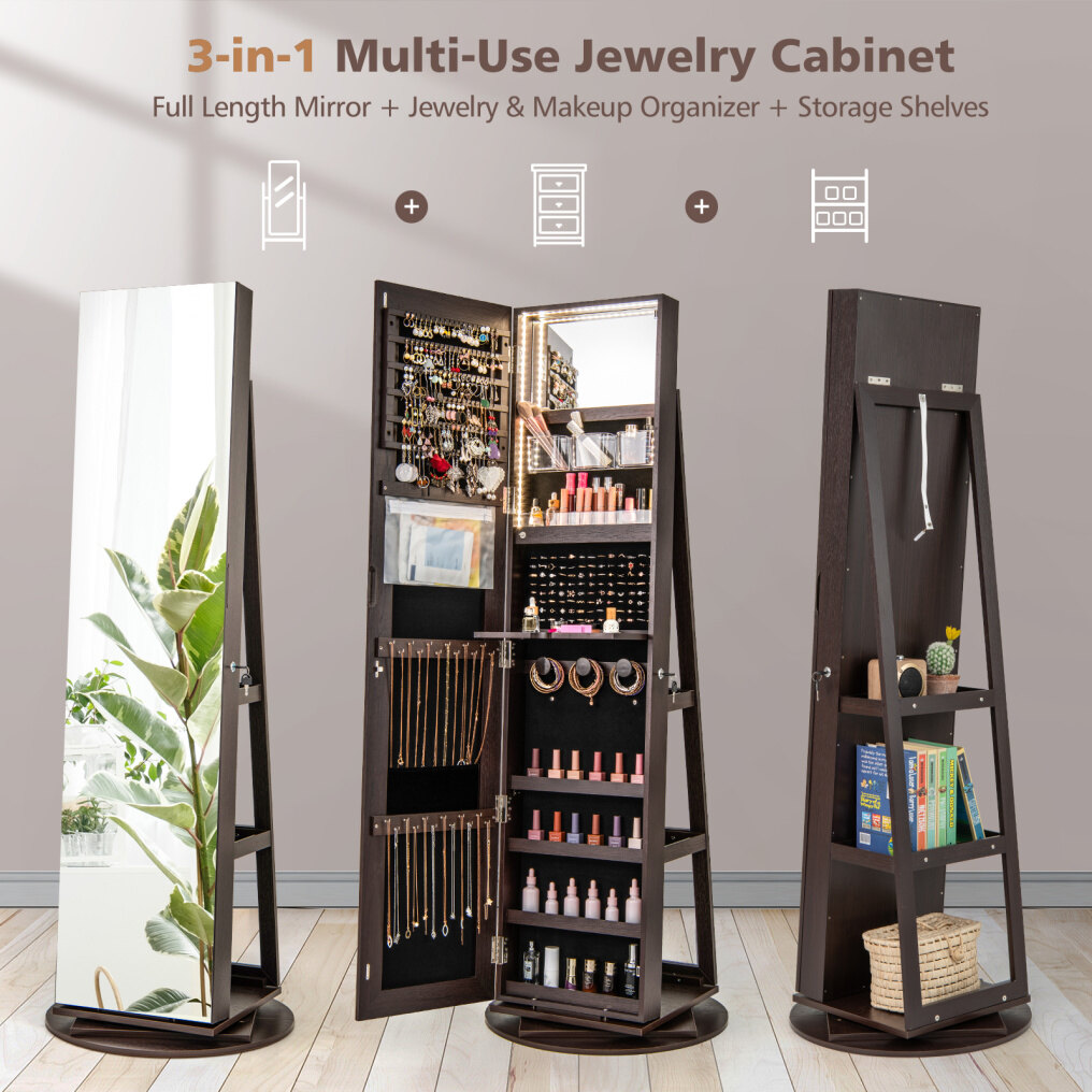 360° Rotating Mirrored Jewelry Cabinet Armoire 3 Color LED Modes Lockable 360° Rotating Mirrored Jewelry Cabinet Armoire 3 Color LED Modes Lockable 360° Rotating Mirrored Jewelry Cabinet Armoire 3 Color LED Modes Lockable