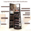360° Rotating Mirrored Jewelry Cabinet Armoire 3 Color LED Modes Lockable-Brown
