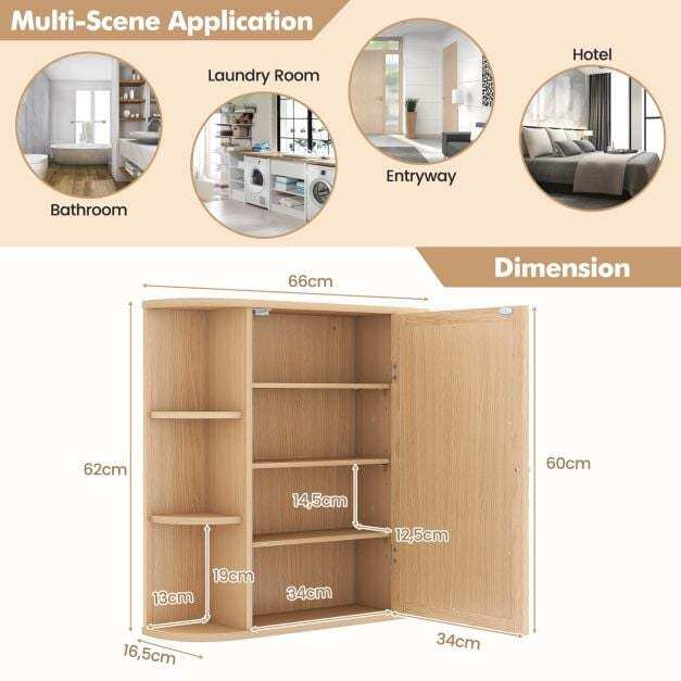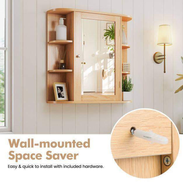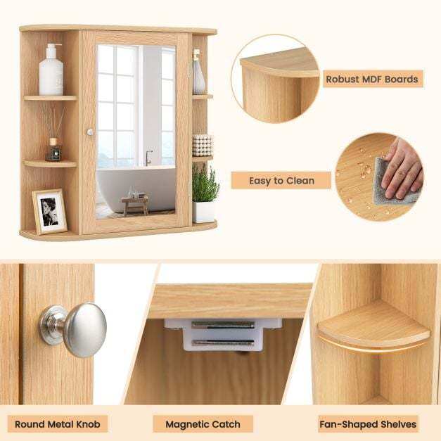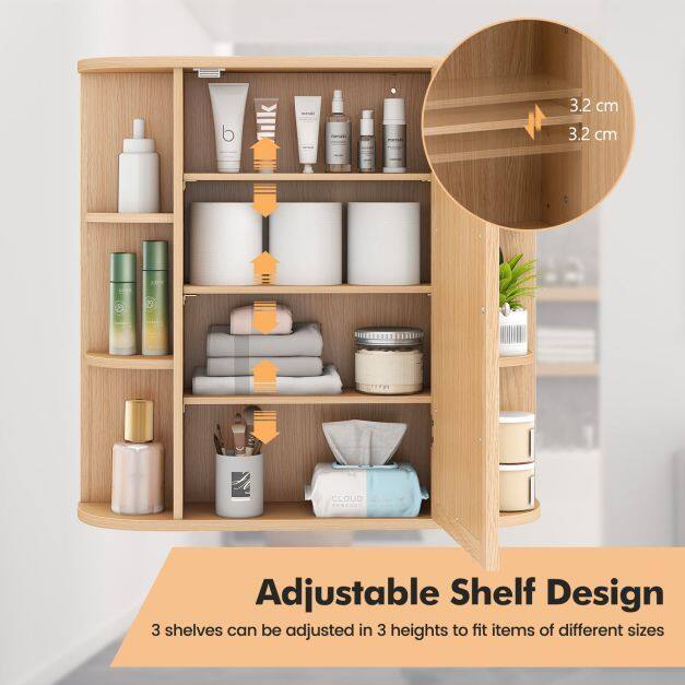 Looking for a storage cabinet? Try this one. Made of sturdy MDF, this cabinet is built to last. It features a mirrored door and six open compartments for storing your toiletries. This wall-mounted bathroom cabinet maximizes space in your bathroom and improves storage efficiency. Suitable for various interior styles, it can be used in a living room, bedroom, kitchen, and more.