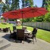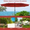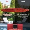 15.4" x 9.2" large canopy provides roomy coverage for a full set of outdoor furniture, and you can spend leisure time with family and friends. The 12-rib steel structure is covered by durable polyester fabric ensures lasting durability for outdoor use. What’s more, each rib has 4 solar LED lights, and there are 48 LED lights that help to enhance the romantic feel at night. And all lights are powered by the top solar panel, effectively saving power. What’s more, there is a standby battery that is prepared for lack of power. It is ultra-easy to open and close the umbrella by rotating the hand-crank mechanism. When the umbrella is not in use, you can close it with a long fixation strap for better storage. More than placing in garden, patio, and backyard, the twin outdoor umbrella is also ideal for commercial places, such as markets, cafes, bars.