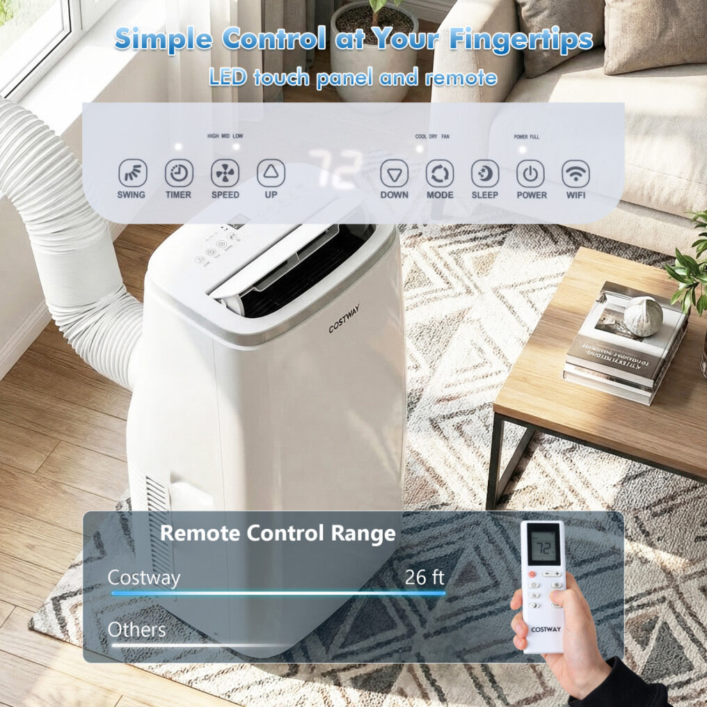 ● Simple Control at Your Fingertips: You can easily manage your indoor climate using the LED touch panel and remote, or smart app control from your phone, which includes adjusting temperature, changing modes, and schedule cooling from anywhere.