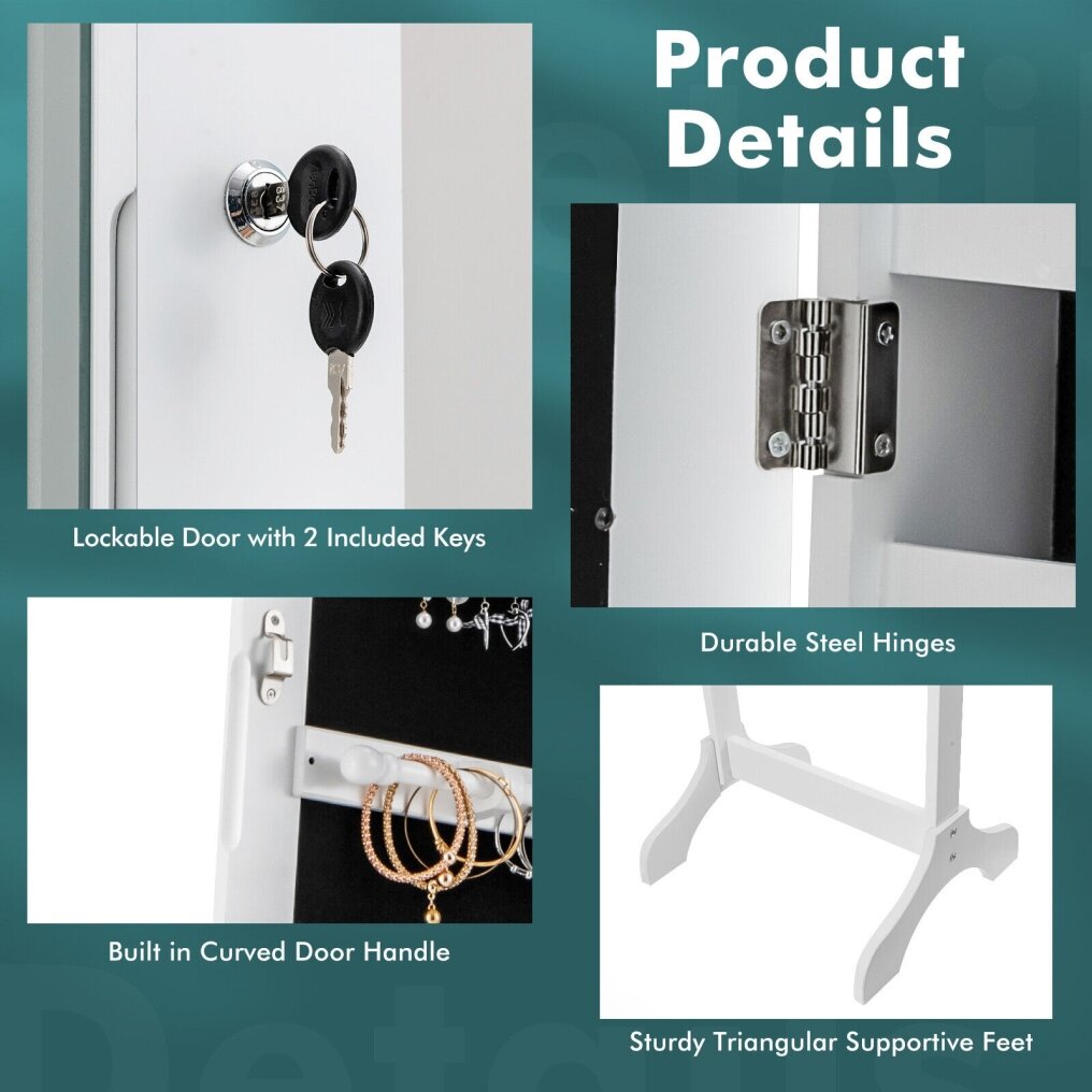 Comprehensive Jewelry Protection: The door of the jewellery organizer is lockable, which will avoid accidental opening and securely store the items when you move the mirror. The package also includes 2 keys. In addition, the soft velvet lining can protect your jewellery from scratching or oxidation.