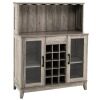 This bar furniture is an ideal wine storage solution with a top shelf, middle counter, hidden storage shelf, 15-bottle wine rack and stemware holder. Besides, the 3-position adjustable shelves are available for your storage preference. With sufficient storage options, this wine bar cabinet doubles as a microwave stand, coffee station, kitchen buffet sideboard and more purposes for you to practice. It abounds in rustic and vintage styling with visible tempered glass doors to add more aesthetics to it. This wine cabinet is advocated for your home, office, bar and pubs. The anti-toppling devices improve security in various rooms.