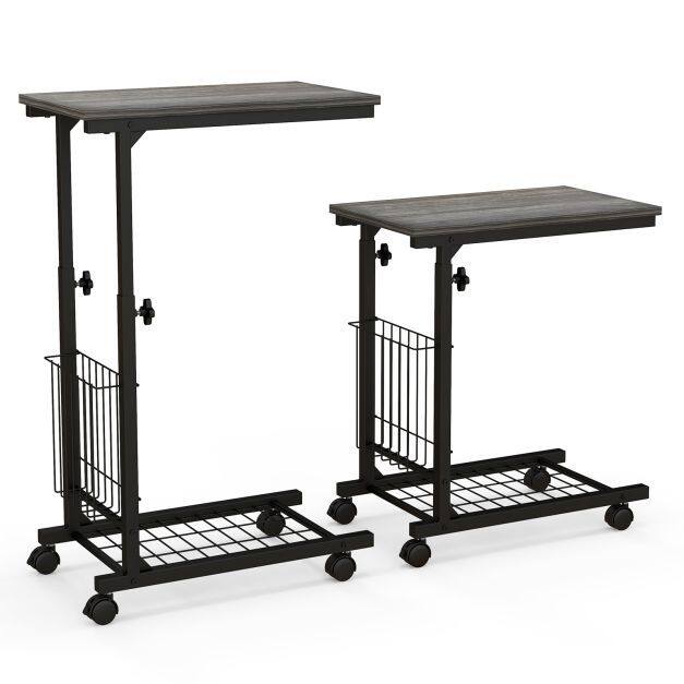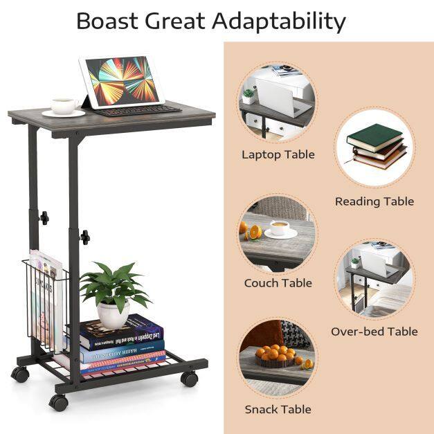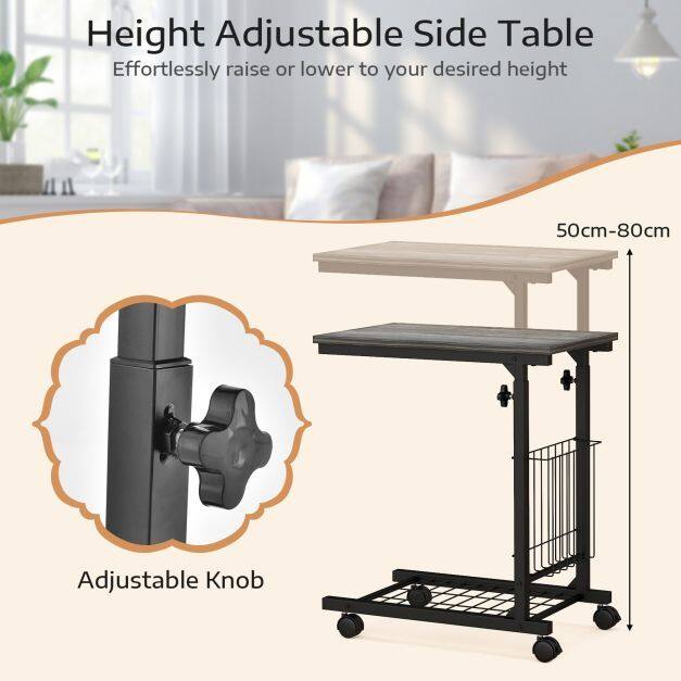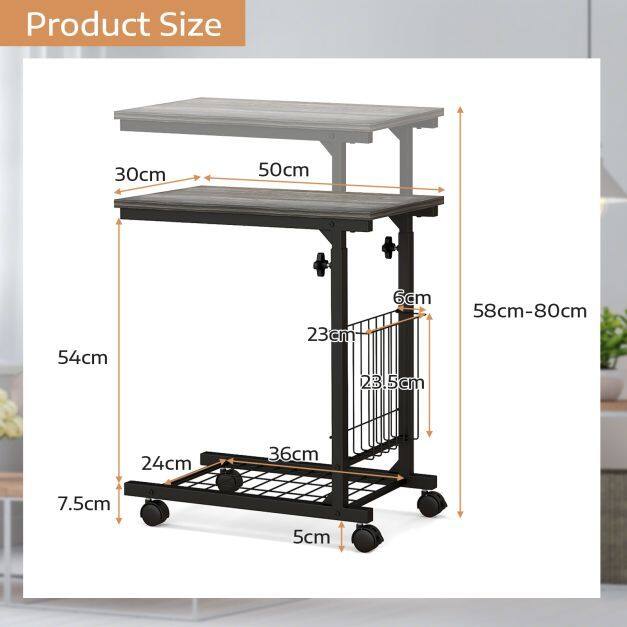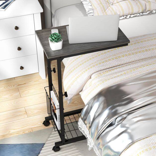 A good assistant for your working, studying or any other activities! Unique c-shape design is easy to insert the table into the bottom of the sofa or bed. The tabletop is spacious enough to put necessary office supplies. The combination of storage basket and bottom mesh storage shelf gives your more space to store daily items. Moreover, you can simply turn the knob to adjust your desired height. For great mobility and convenient use, the flexible casters make moving the sofa side table easier from one place to another. Whether used in the living room, bedroom and office, this c-shape end table will undoubtedly be an ideal choice.