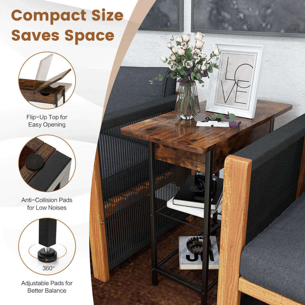 ● Flip Top Design: To hide the power station for a tidy look, the bedside table is designed with a flipping tabletop, which also allows easy access to the interior storage space. Besides, the intimate cut-out design and the anti-collisions pads bring a better experience, leaving there no pinching or slamming.
