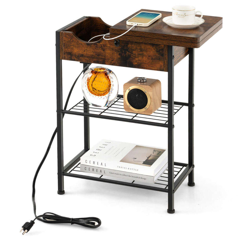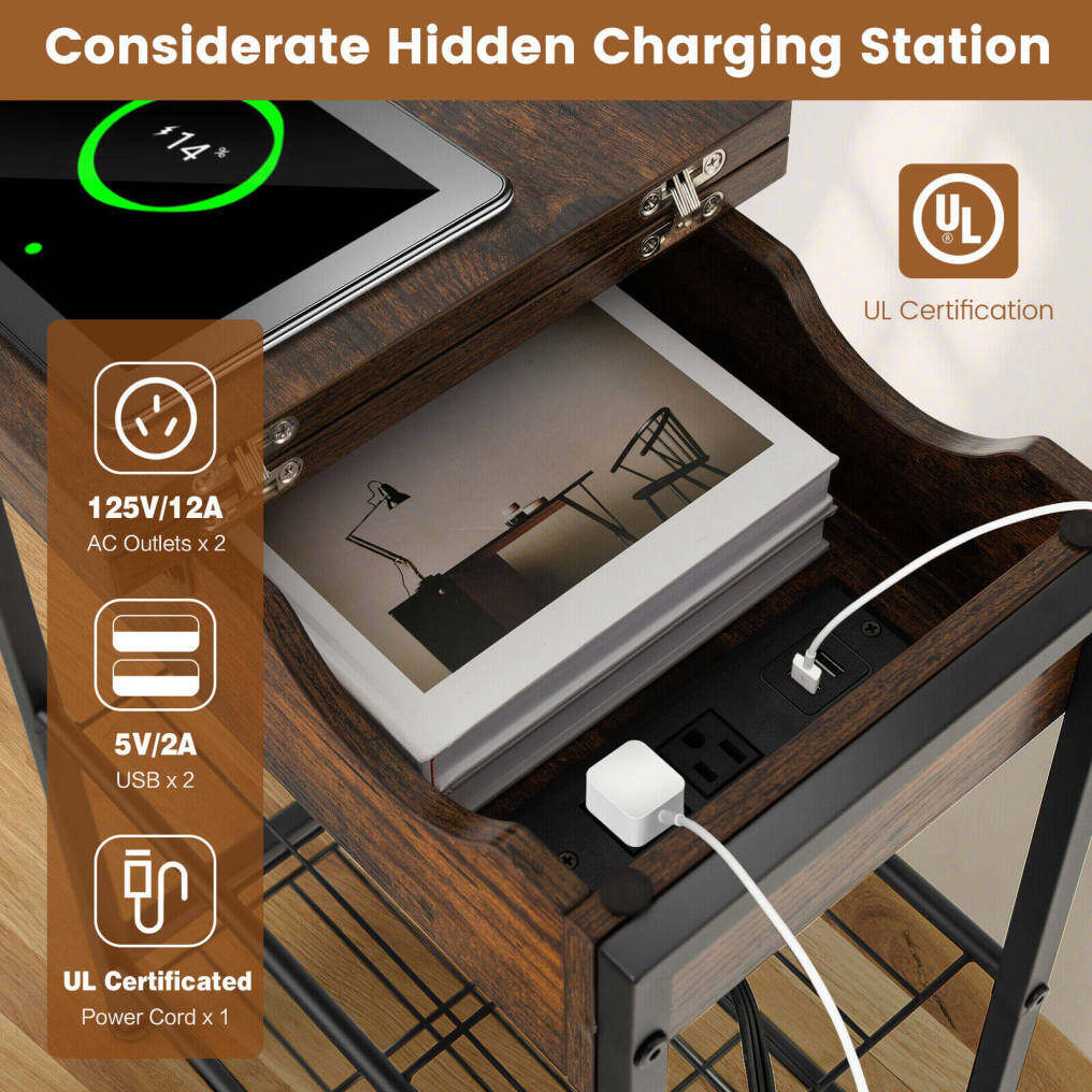 ● Built-in Power Station: Sitting on the sofa but having nowhere to charge your phone? Don't worry! This end table with a built-in power station will be of great help. There are 2 power sockets and 2 USB ports to deal with charging needs. And they are reasonably set apart to get all the outlets in full play.