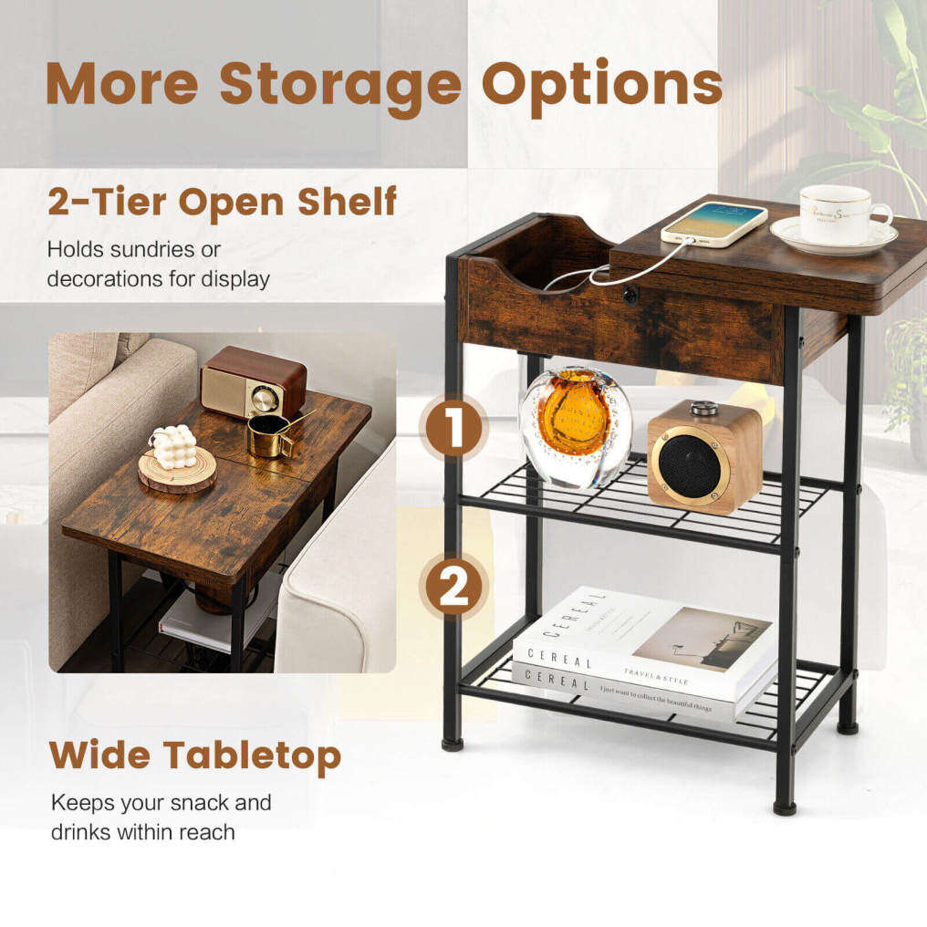 ● Generous Storage Space: In addition to charging your phones, the sofa side table comes with ample storage space to help you organize the living room sundries or bedtime essentials. The enclosed storage compartment protects privacy, while the spacious tabletop and 2 open shelves display your favorite decorations.
