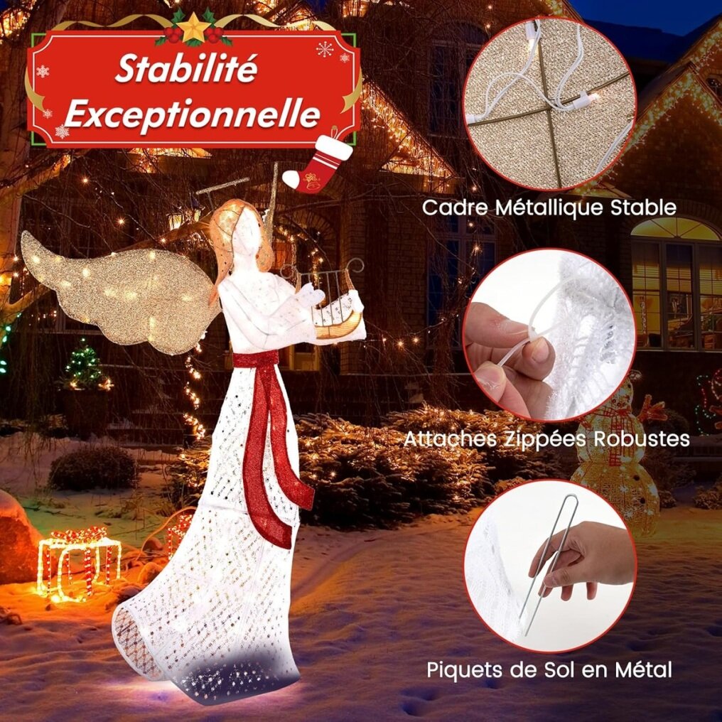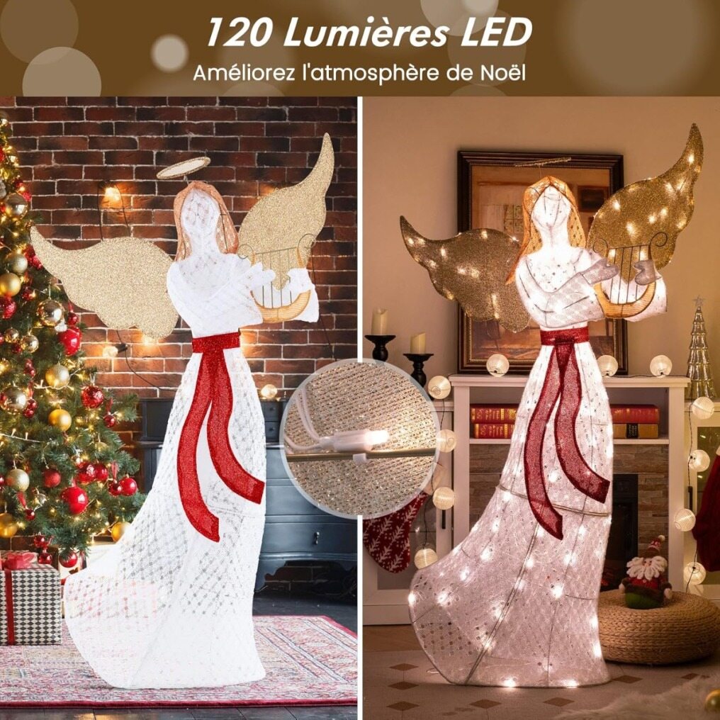 【Shining Elegance】Equipped with 120 LED lights, our pre-lit Christmas angel decoration shines brightly in your festive décor. The energy-efficient LEDs emit a serene glow while remaining cool to the touch. Perfect as an illuminated Christmas figure, it promises a safe and splendid display.