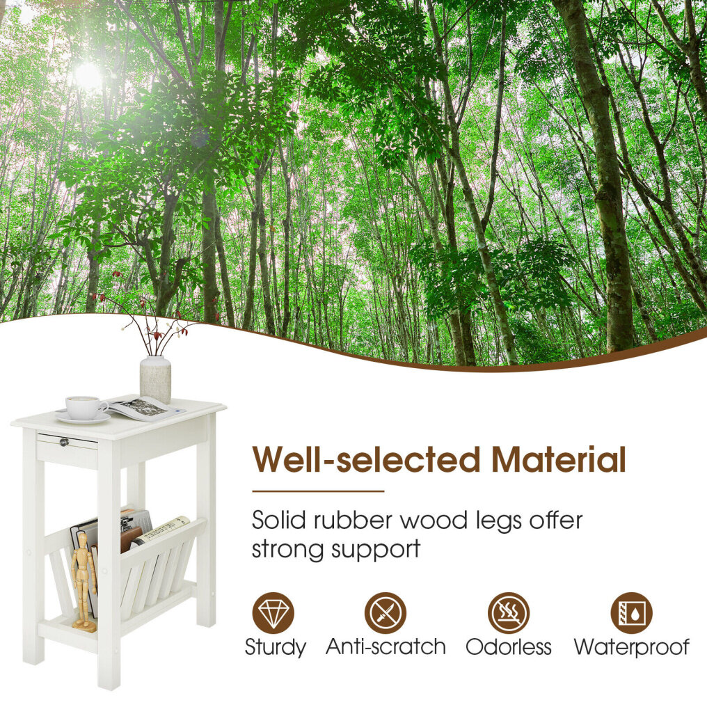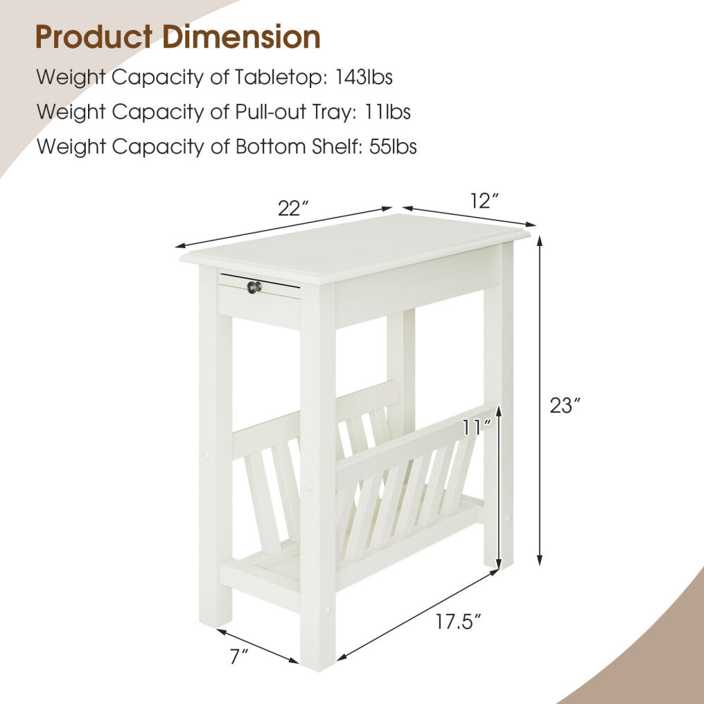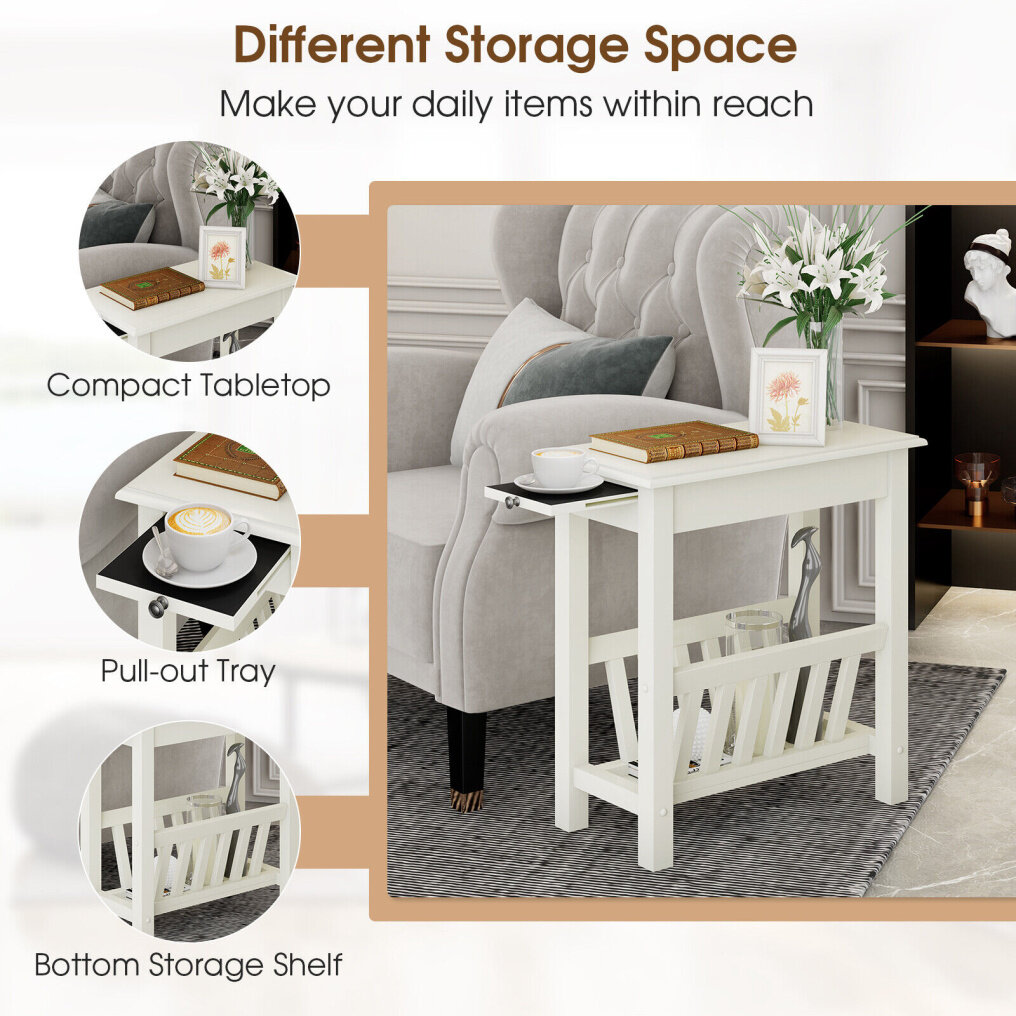 This practical side table with compact tabletop, pull-out tray and bottom storage shelf will be a perfect choice for you. It adds functionality to your furniture while fully utilizing the space of your home, which is a perfect choice for your bedroom, living room, study and so on. Made of high quality MDF material with solid rubber wood legs, this end table is sturdy and durable enough for longer service time and will not deform easily. The 2-tier design with pull-out tray offers ample space for your daily items. In addition, this side table is easy to assemble, and the smooth surface requires less effort to maintain.