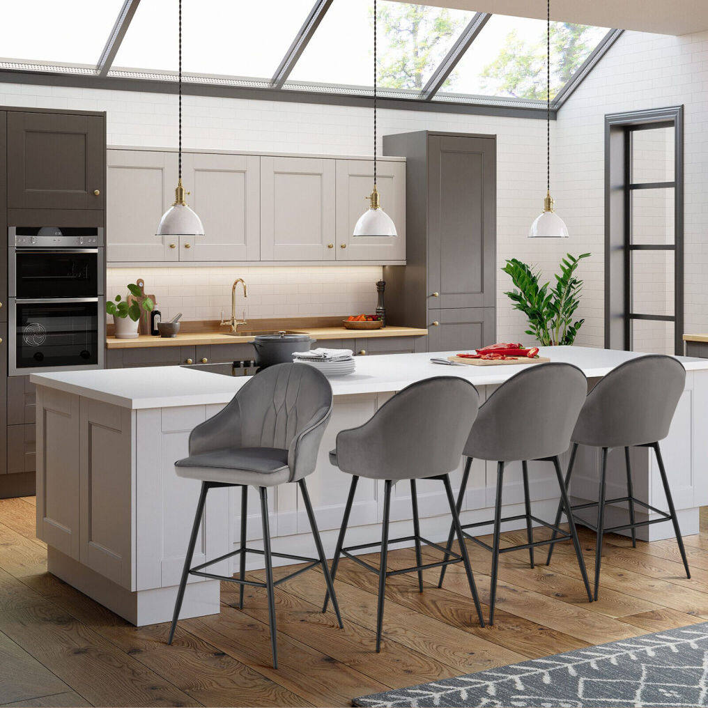 ● Rugged Structure and Easy Clean-up: This bar height bar stool set is supported by powder-coated steel legs, further enhancing its overall stability. Each stool has a maximum weight capacity of 300 lbs. Plus, non-slip foot pads prevent the floor getting damaged. The surface is easy to clean and saves much effort in daily maintenance.