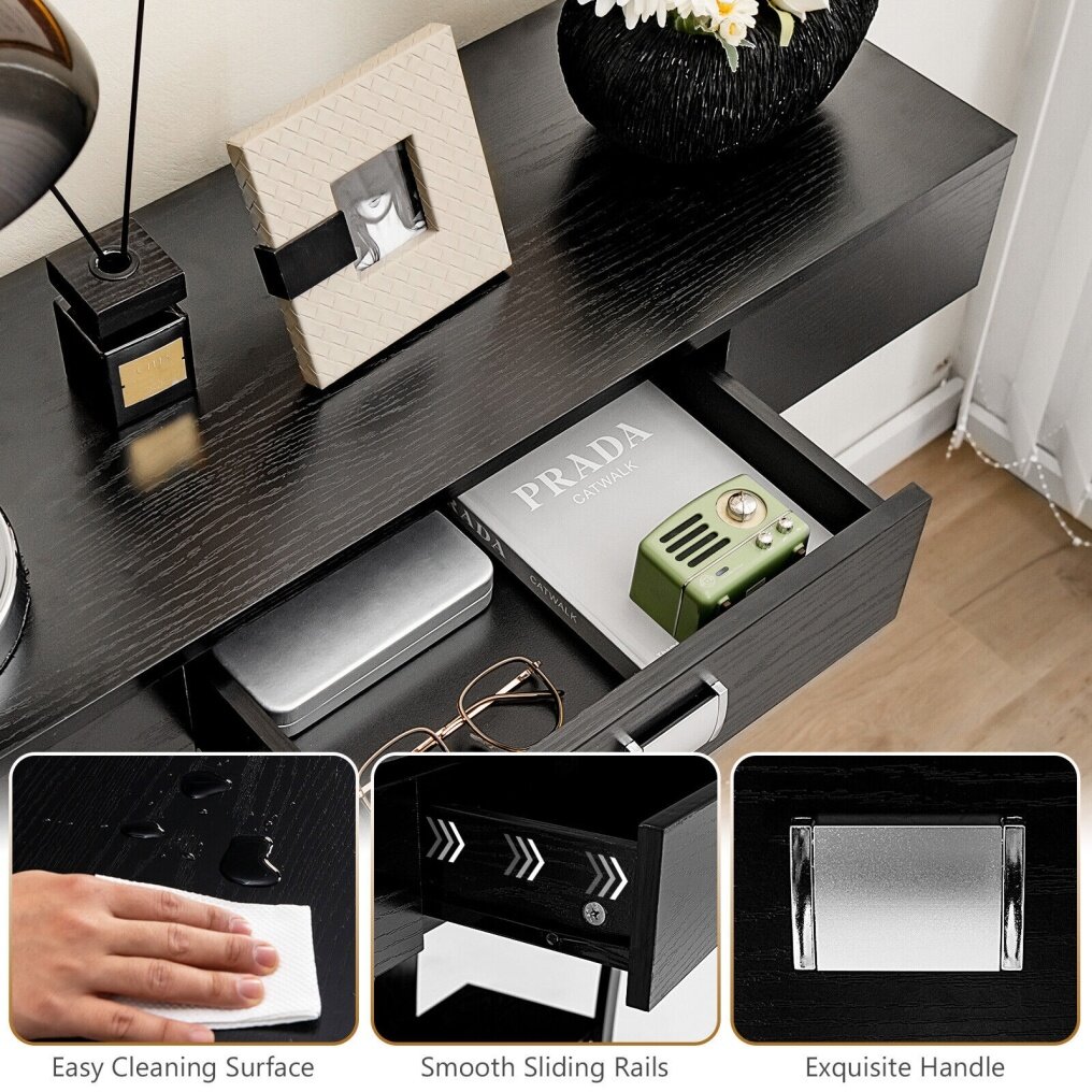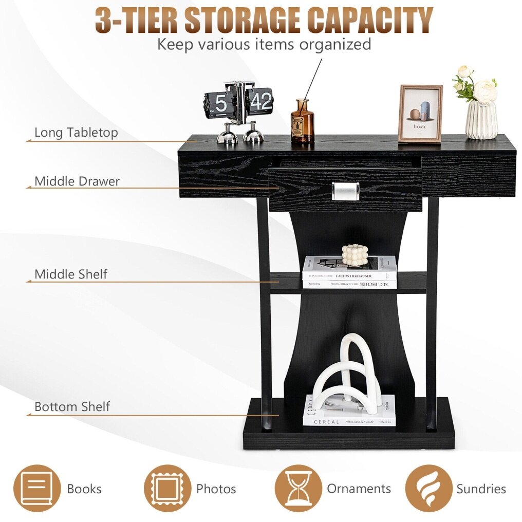 Console Table with Drawer and 2-Tier Shelves for Entryway Living Room-Black