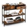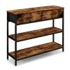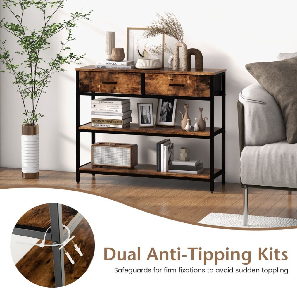 Add this stylish storage addition to your home! Metal frame ensures its sturdiness, while adjustable pads offer ideal stability. More, it also comes with 2 anti-tipping kits for further fixation, highly improving the user safety. More importantly, the behind couch table has a wide tabletop, 2 fabric drawers and a 2-tier shelf. All offer large storage to avoid any messes in your home. By the way, 2 drawers are foldable, allowing for a compact folded size when not in use. The foyer table looks stylish, adding an industrial touch. All you need to do is complete the simple installation.
