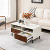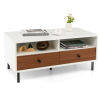 ● Compartmentalized Design and Large Storage Space: This color blocking coffee table has a wide top to accommodate food and drinks for daily family gatherings. Besides, the interior of the coffee table includes 2 open shelves and 2 drawers. Ample storage space allows you to sort your daily necessities and keep the room free from clutter.