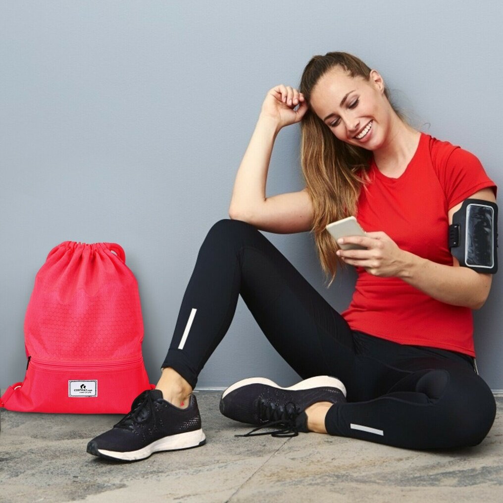 ● Large Capacity: This premium sackpack comes with spacious space for you to put different items, such as clothes, towels, water bottles, laptop and books, etc. Meanwhile, the front pocket with zipper is suitable for sunglasses and tissues, making them within reach. And you can store your phone, key and other small valuables on the inside pocket to prevent any pickpockets.