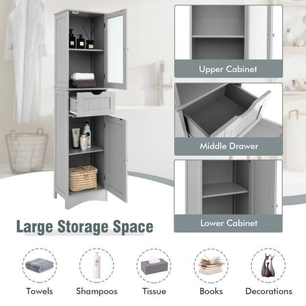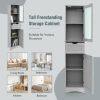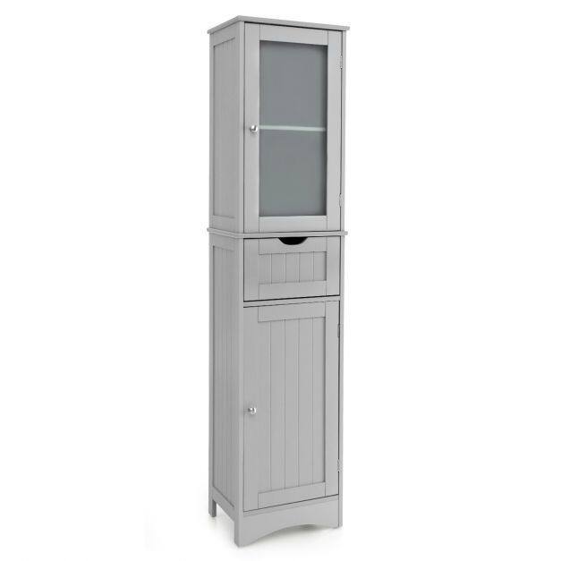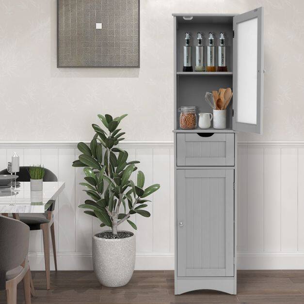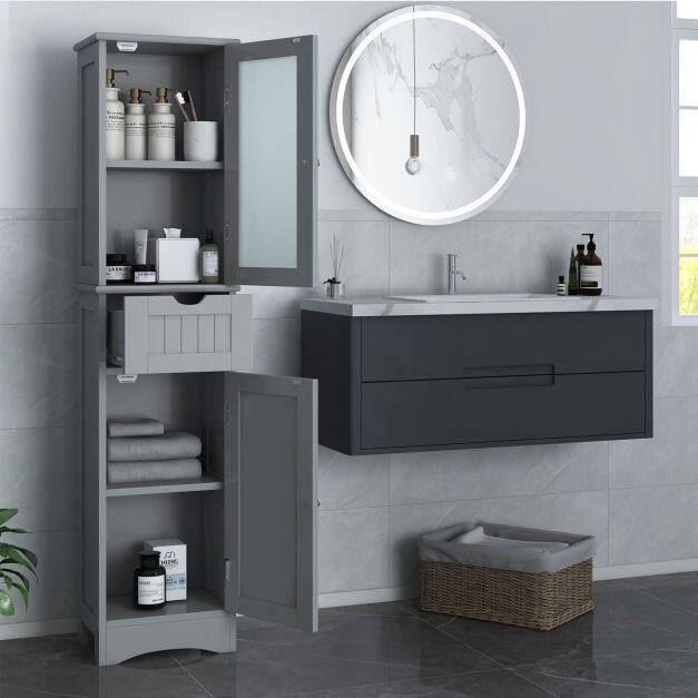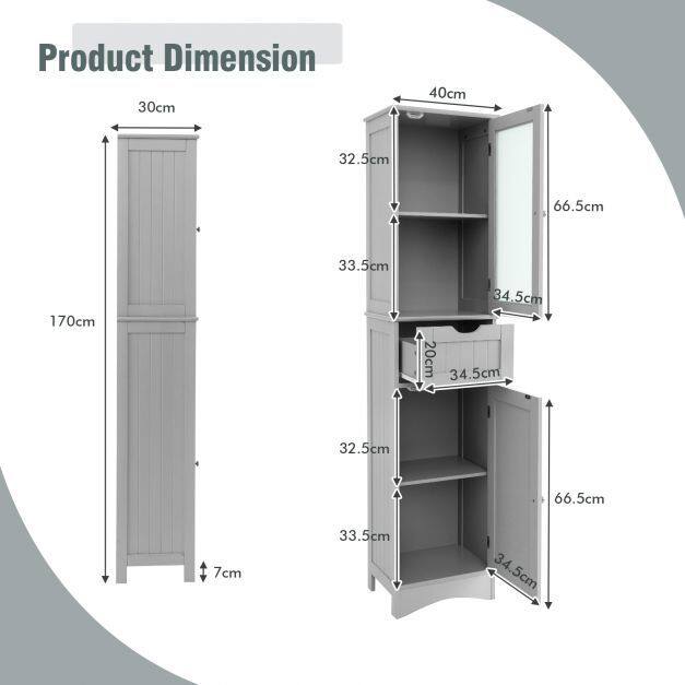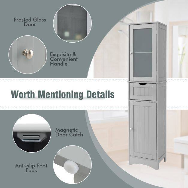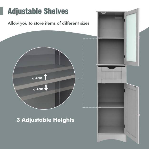 ● Sturdy Structure and Safe to Use: The bathroom storage cabinet is made of high quality MDF material, which makes it sturdy enough for long time use. The frosted glass door adopts tempered glass for better security. Moreover, you can fix the storage cabinet to the wall using included anti-toppling device for added safety.