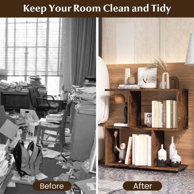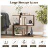 ● Sufficient Storage Space: This double-layer shelf features a wide top and 4 different sized storage compartments. It not only provides you with ample storage space, but also allows you to sort items for easy access. You can put greenery, photo frames or other decorations on the top or place books on the storage compartments.