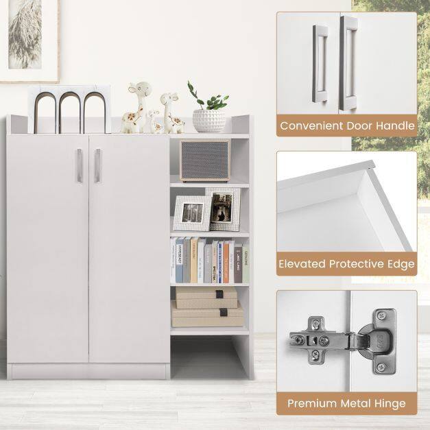 ● Large Storage Capacity: The shoe cabinet offers multiple options for your storage needs. You can put keys, bags, ornaments and other daily essentials on the spacious countertop. The 2-door cabinet can hide shoes away from sight, while the 5 open compartments are ideal for placing your most commonly worn shoes.