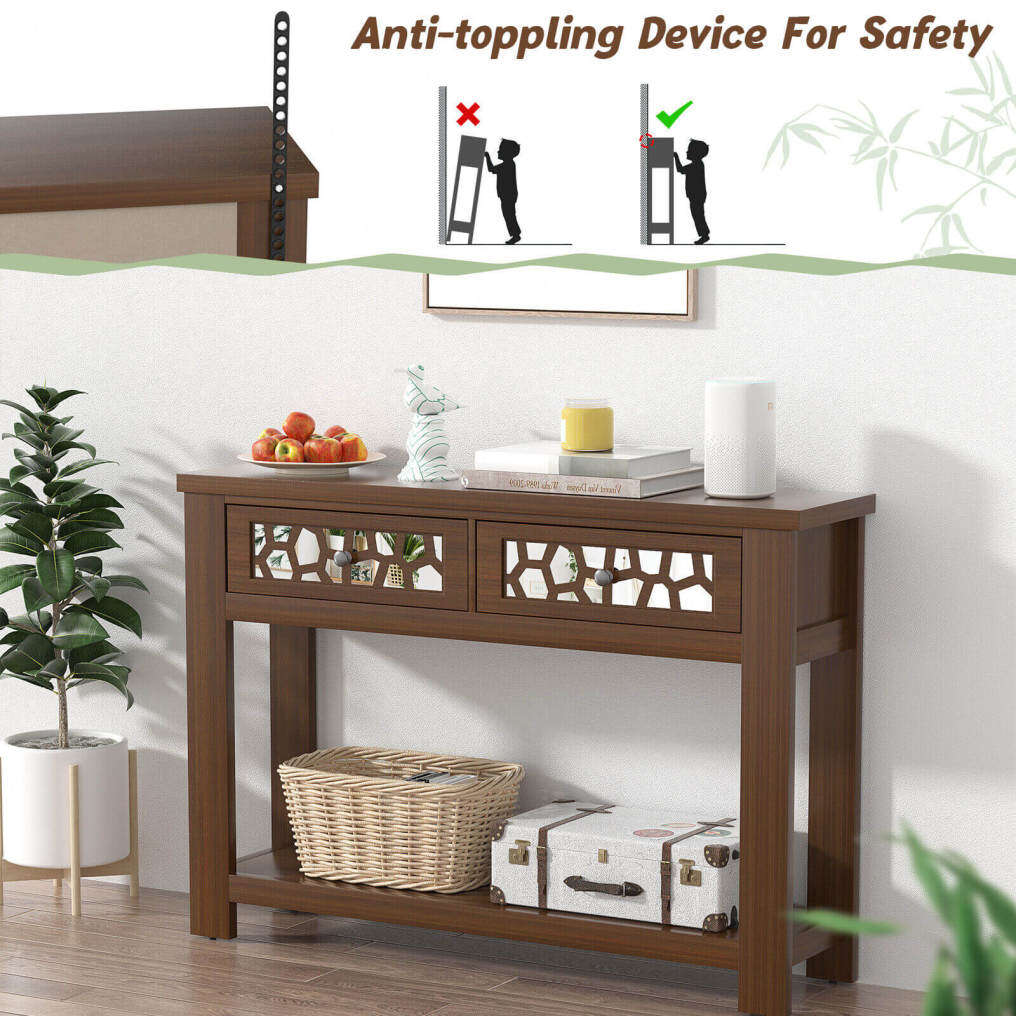 ● Ideal Console for Your Home: This table has a very unique design with a mirrored front that will bring a gorgeous accent to your home. With its simple lines and elegant color, it fits most home decor styles. Whether you are a fan of vintage, rustic, or modern style, this is the ideal one for your home.