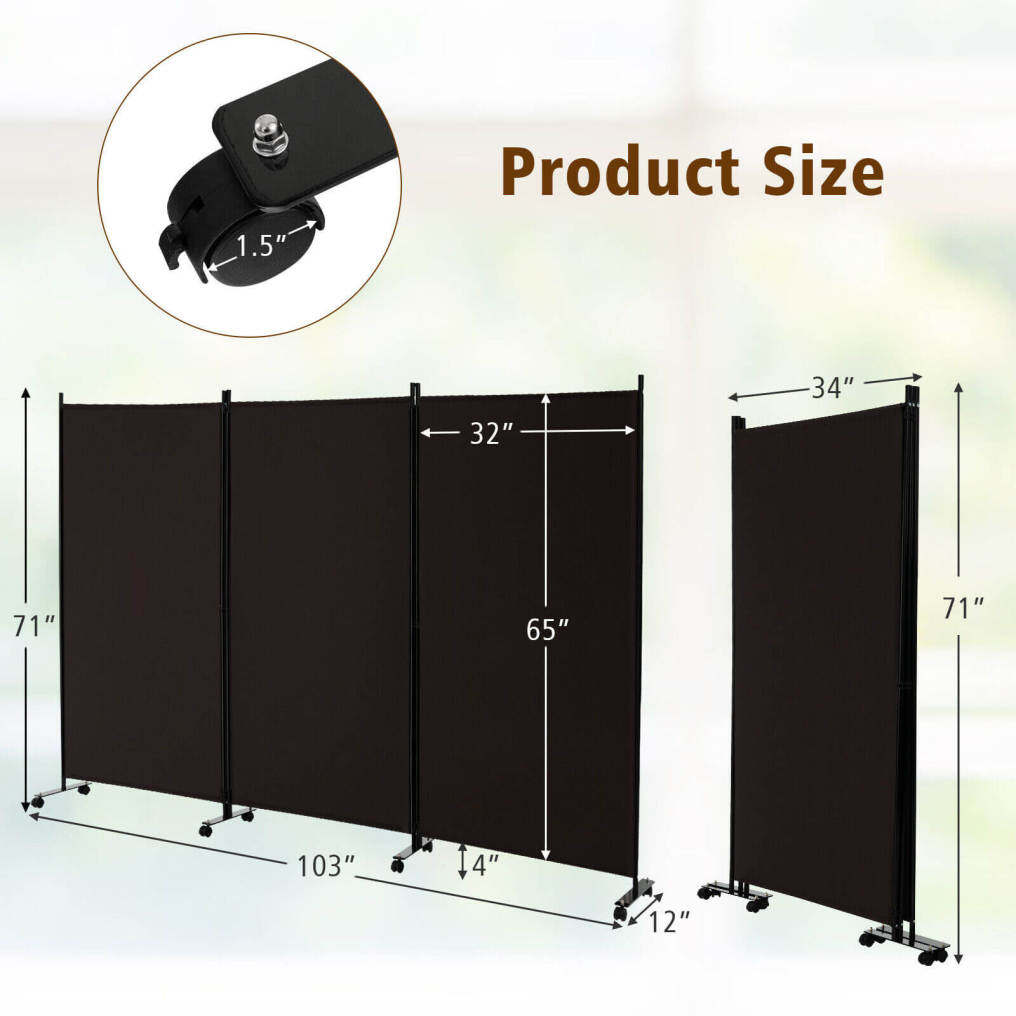 ● Rolling Wheels for Easy Mobility: Our partition room divider is equipped with 8 smooth universal wheels with brakes, which allow you to move it easily and with low noise. These lockable wheels improve the stability of the screen and prevent it from slipping. The freestanding design allows you to easily change and move the position of the room divider.