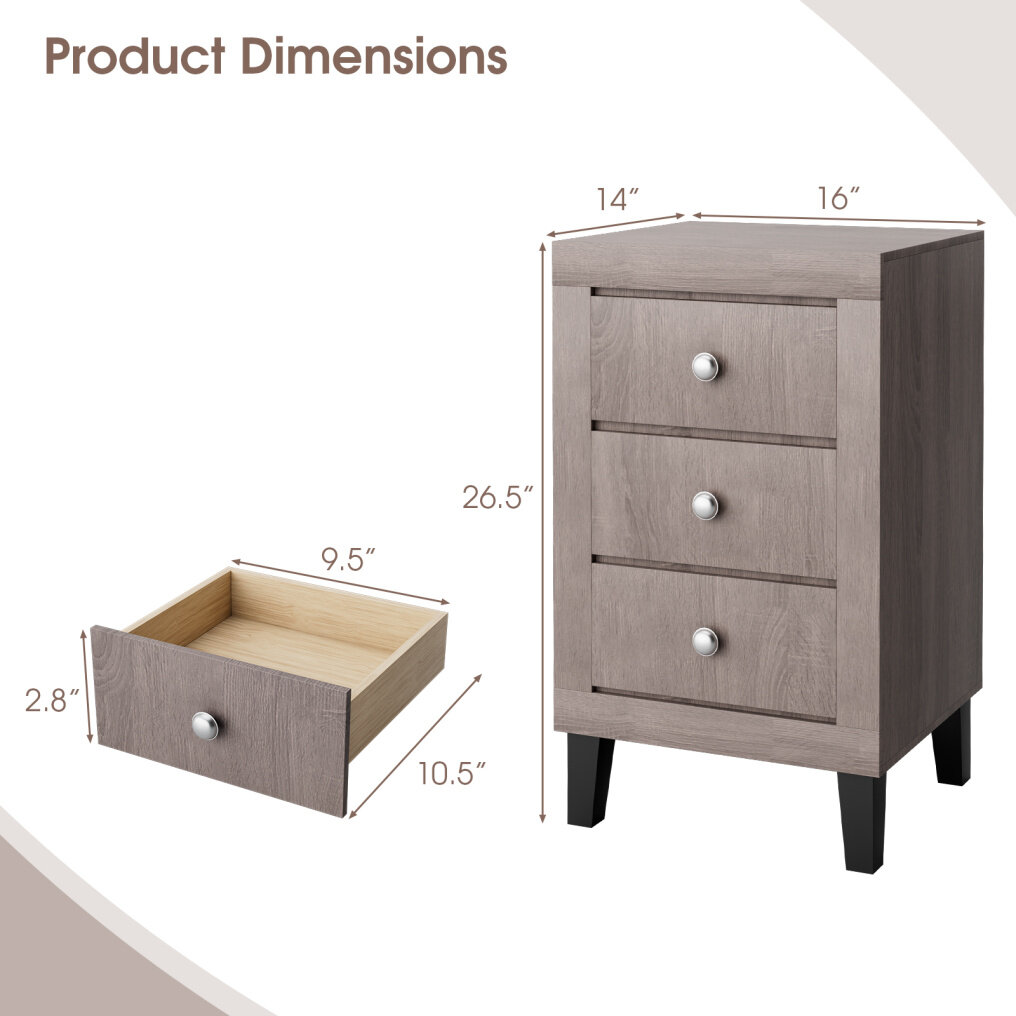 ● Wide Storage Space: This storage cabinet is equipped with a spacious tabletop featuring 22x18.5" (L x W), which can meet your daily storage needs. Also, it is designed with three deep drawers where you can place some private items for quick and convenient access. With the storage cabinet, you can keep your room neat and tidy.