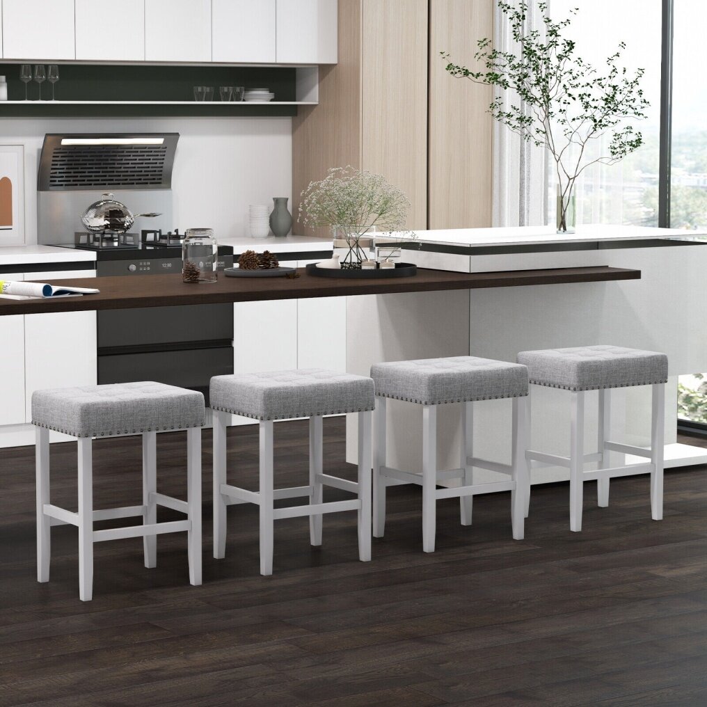 ● Counter Height Stools: These bar stools measure 24.5" high, which is suitable for counters with 35"-39" height. On the other hand, the backless design helps you to easily store them under the counter when not in use.