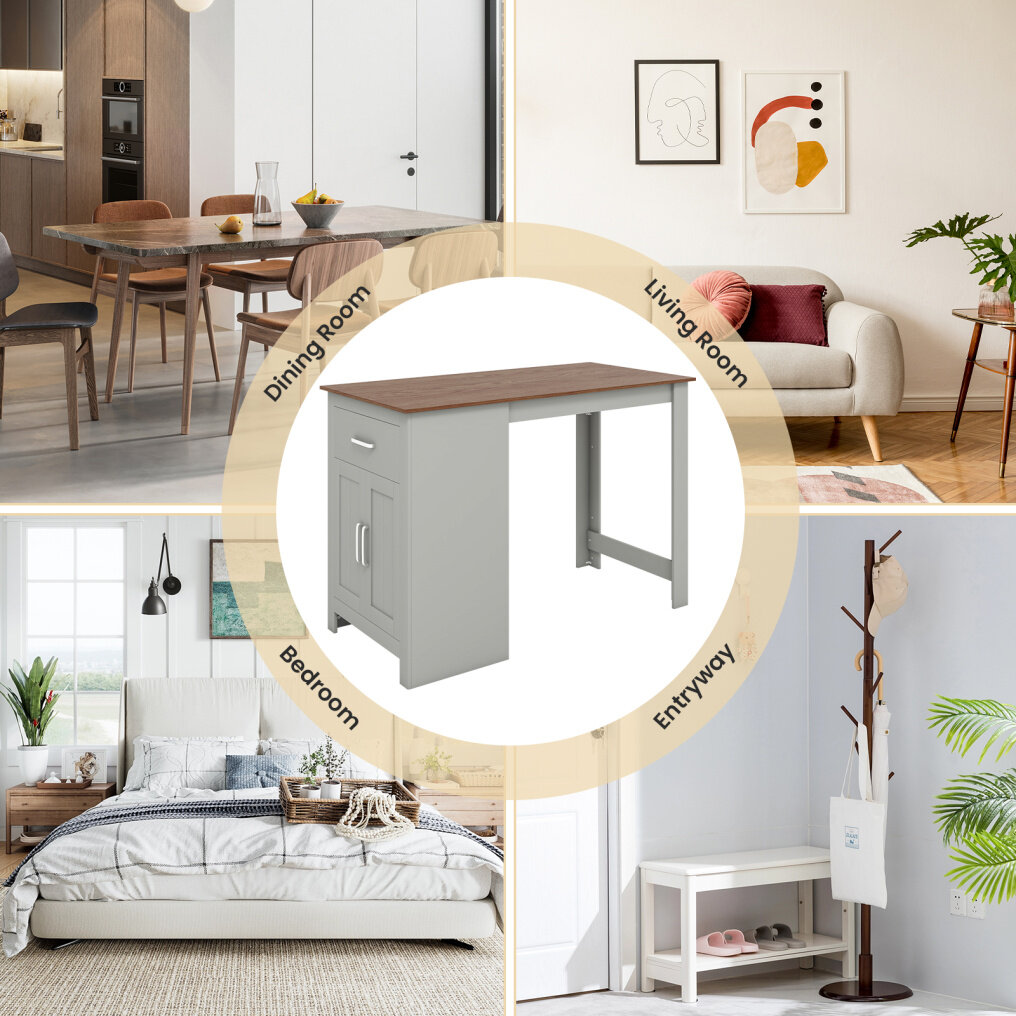 ● Narrow Design yet Large Capacity: This counter height bar table features a narrow design that takes up little floor space. Nevertheless, it still boasts a large storage capacity. The pull out drawer as well as the 2-tier storage cabinet holds dining supplies for easy access so that you can enjoy meals without interruption.
