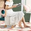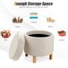 The round storage ottoman features a removable 2-sided lid that combines an upholstered seat with a wooden serving tray. The ottoman, therefore, can be used as a footstool, an extra seat and a coffee table. Besides, a hidden compartment inside the ottoman offers ample storage space for sundries, helping you keep the room tidy and clean. Designed with the user’s comfort and convenience in mind, the lightweight stool is soft padded and covered with breathable fabric. And the legs are made of solid pine wood and stuck with four non-slip foot pads for large bearing capacity and extra stability. With these above merits, the multifunctional ottoman will definitely be your best choice!