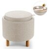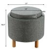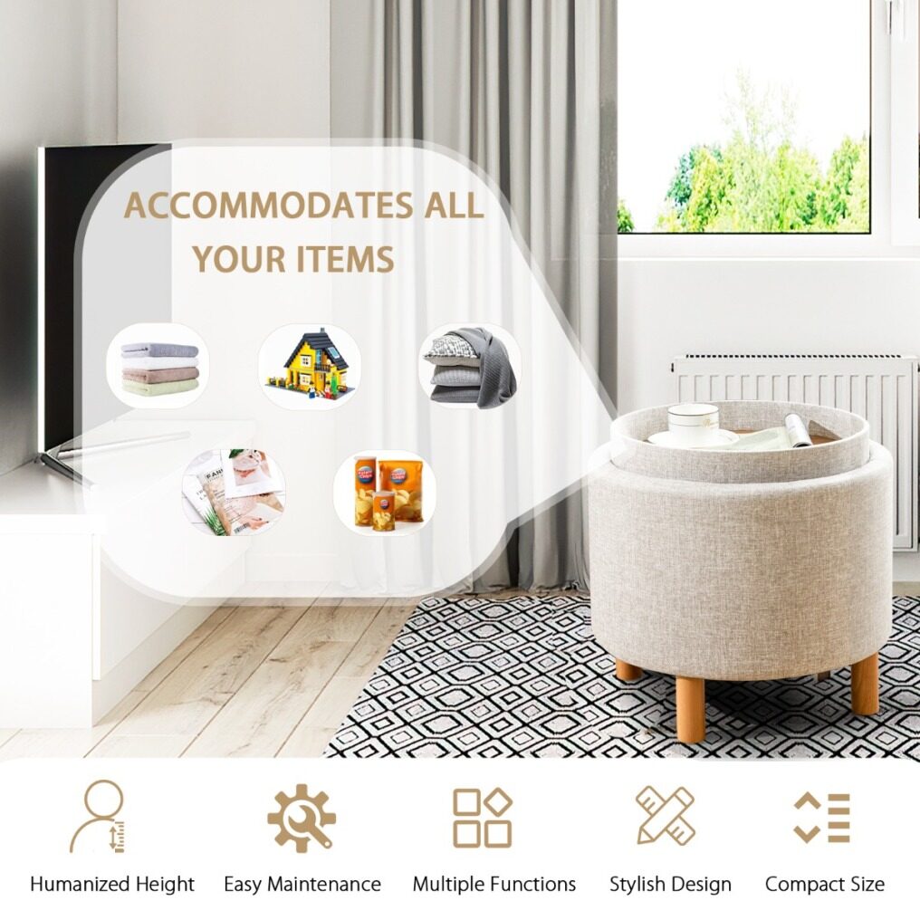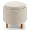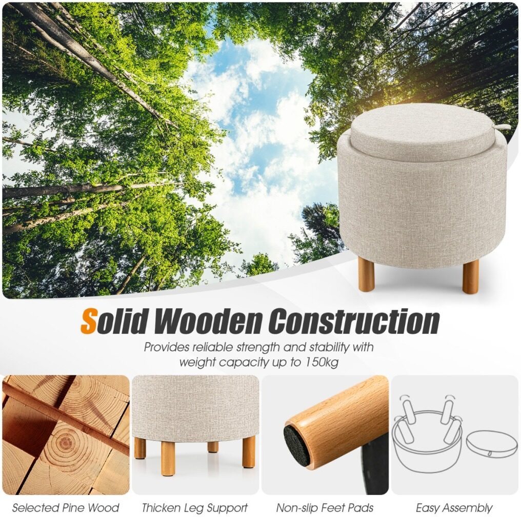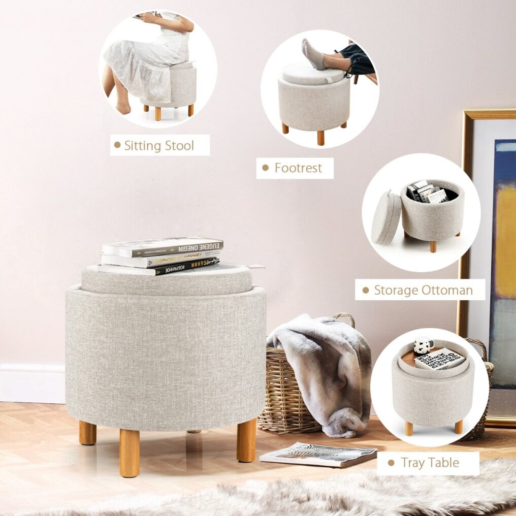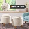 - Storage Ottoman with Removable Tray Top: The round footstool is equipped with a removable tray top, which allows you to treat this stool to a side sofa table. Flipping over the lid, you can put some desserts and cups to enjoy tea time. Since its wooden layer, this tray ensures high load capacity and easy maintenance.