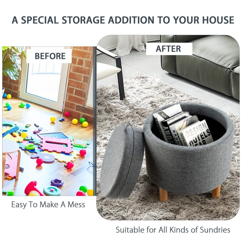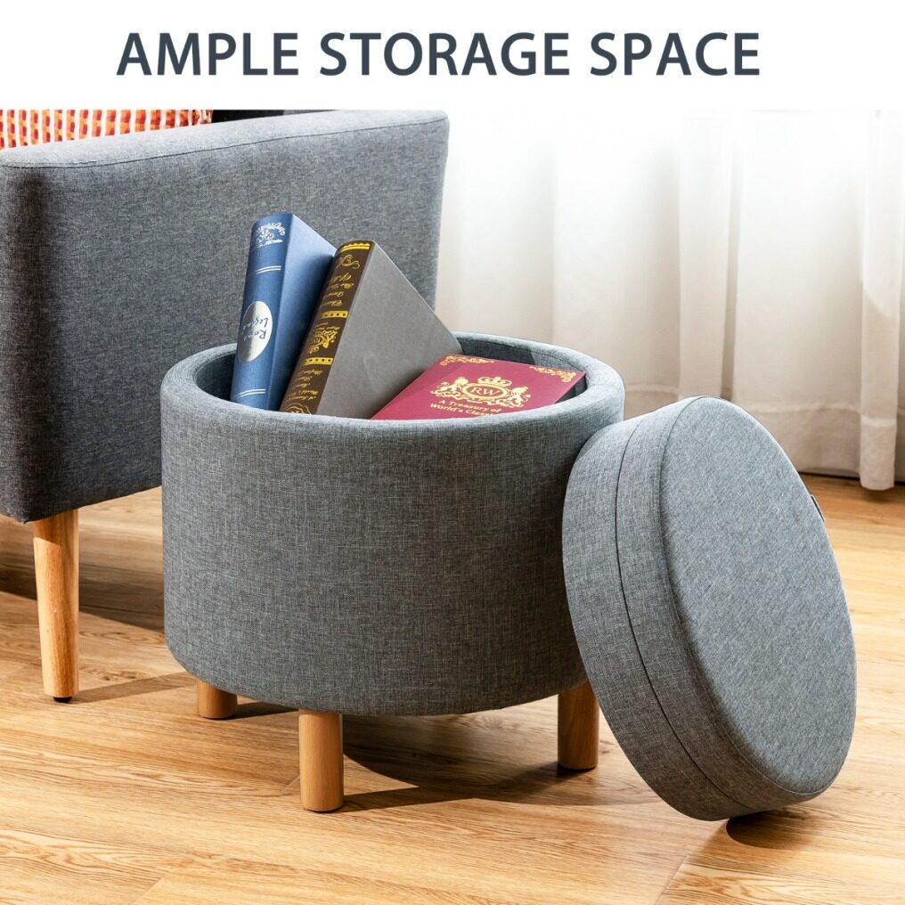 - Inner Extra Storage Space: Specially designed hollow round shape makes this upholstered ottoman ample storage space for sundries, such as remote controls, blankets and toys. And these things can be stored safely when you cover the lid, making your room tidier.