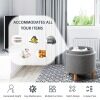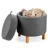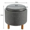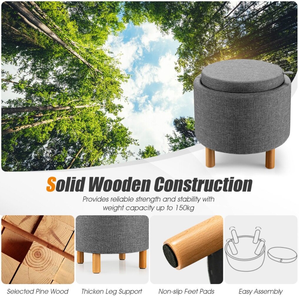 The round storage ottoman features a removable 2-sided lid that combines an upholstered seat with a wooden serving tray. The ottoman, therefore, can be used as a footstool, an extra seat and a coffee table. Besides, a hidden compartment inside the ottoman offers ample storage space for sundries, helping you keep the room tidy and clean. Designed with the user’s comfort and convenience in mind, the lightweight stool is soft padded and covered with breathable fabric. And the legs are made of solid pine wood and stuck with four non-slip foot pads for large bearing capacity and extra stability. With these above merits, the multifunctional ottoman will definitely be your best choice!