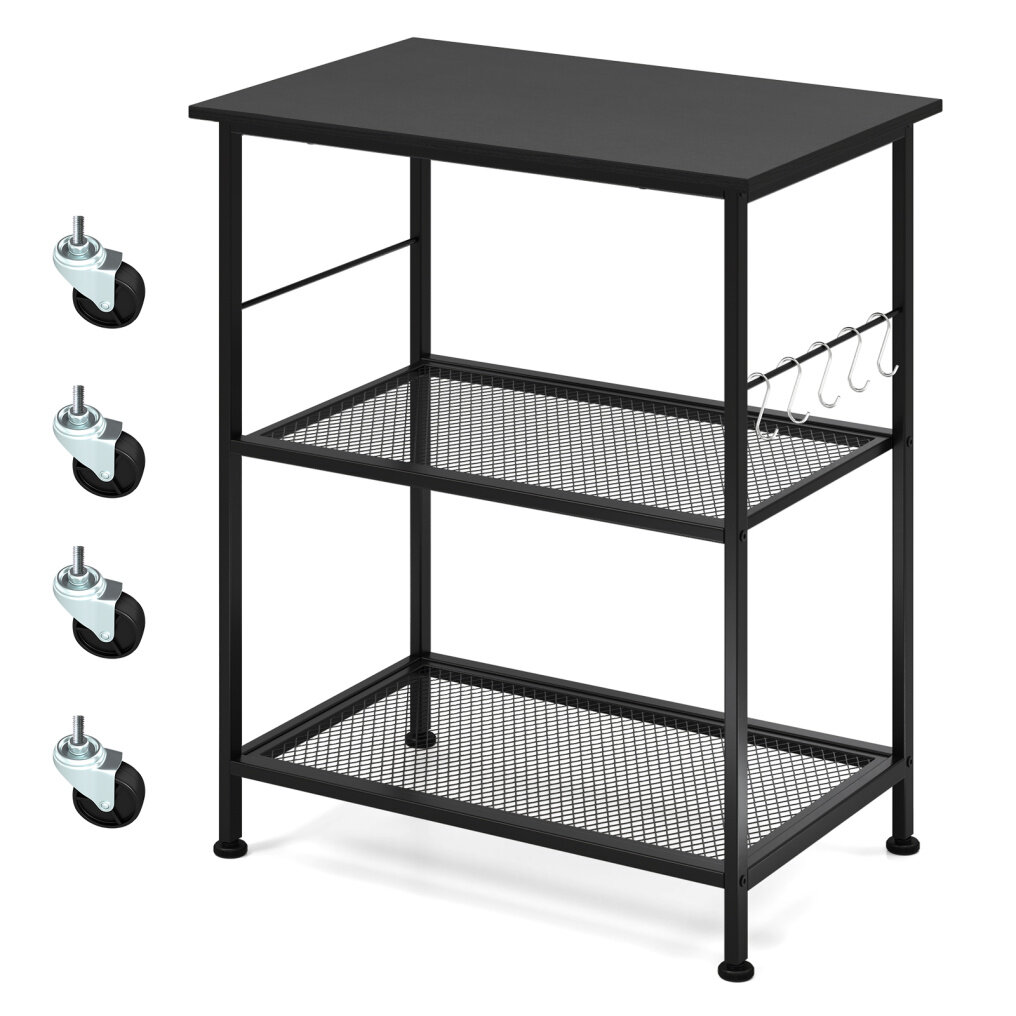 ● Spacious 3-tier Open Shelf: Designed with 3 large open shelves, our serving island cart provides ample storage space for your kitchen and dining room necessities, thus keeping the kitchen more tidy and well-organized. Also, the side bars and 5 hooks allow you to hang spoons, cups and other tools for easy access. More, this space saving cart helps you save space and fit in a small place.
