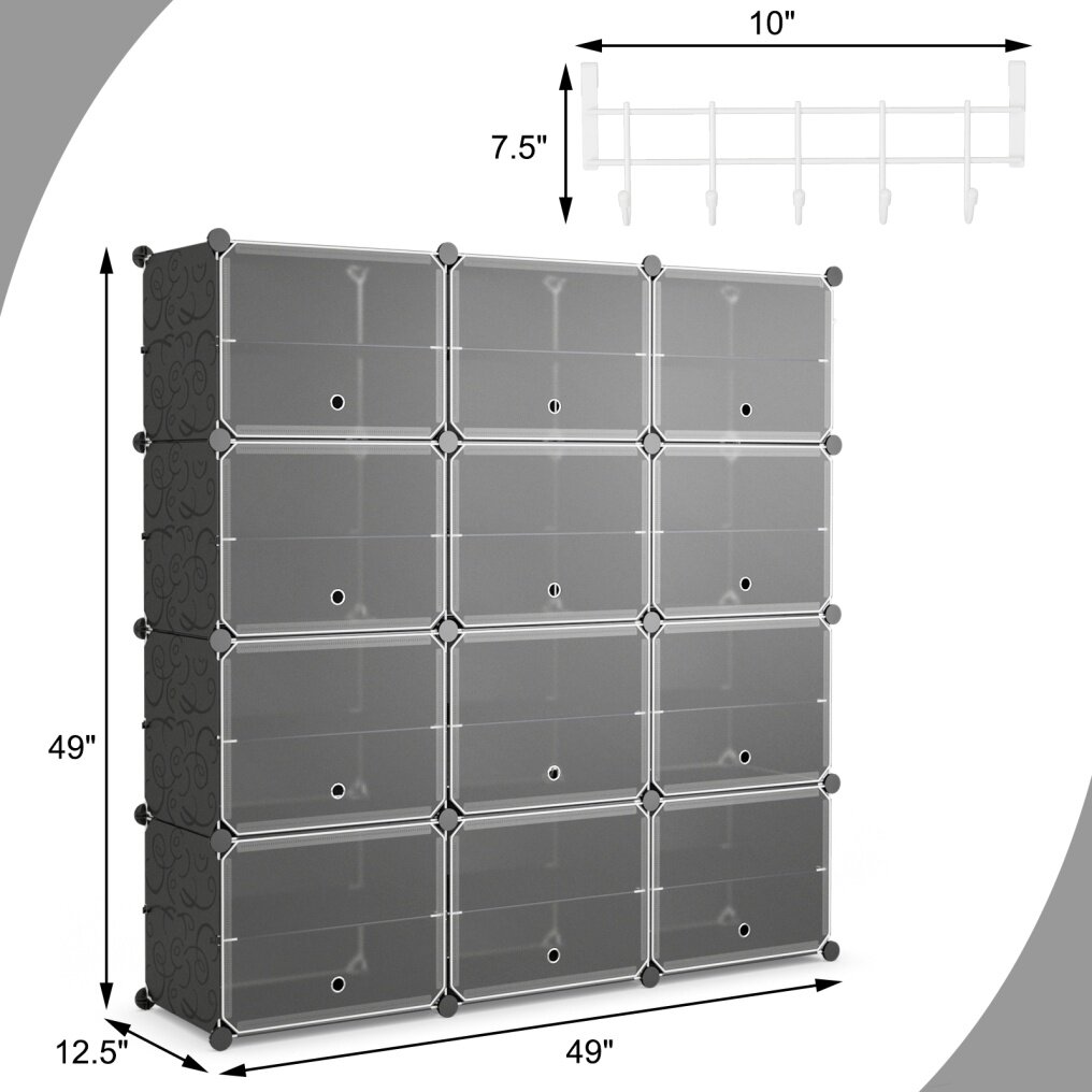 Large Shoe Storage Organizer: 12 cubes with 2 tiers and 5 hanging hooks provide sufficient storage, meeting all your storage needs. You can place your shoes, books, toys, clothes, ornaments or storage baskets in it. Besides, removable shelf offers one-tier or two-tier storage for you to put higher shoes, such as high heels and boots.