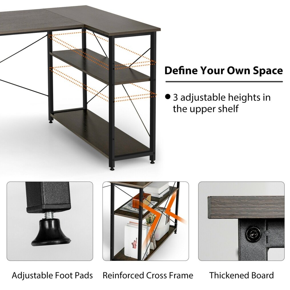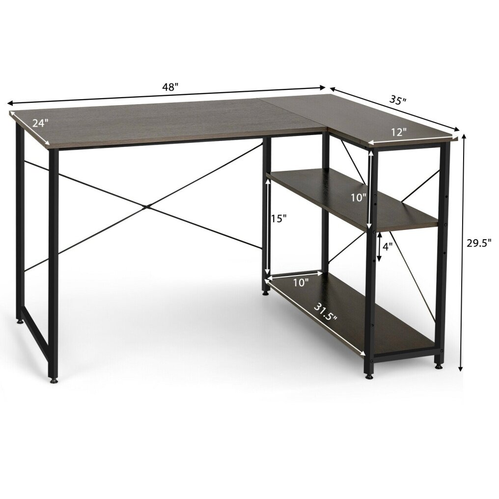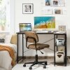 With a spacious desktop and 2-tier open shelf, the writing desk is large enough to accommodate your laptop, books and other office supplies. The reversible shelves can be installed on the left or right to customize your own workstation. What’s more, the middle shelf (3 positions adjustable) is adjustable for versatile needs. Crafted from superior engineered wood and steel, this office desk promises long-lasting service life. It is perfect for living room, study, office as a computer desk, writing desk and office desk.